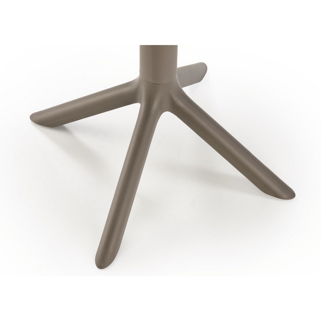 Kulatou horní desku i podnož tvoří pevný plast. Tento materiál je známý svou dlouhou životností, odolností a v neposlední řadě také velmi snadnou údržbou. Stačí pár tahů vlhkým hadříkem a stůl je opět jako ze škatulky. Hodí se i pro venkovní použití.