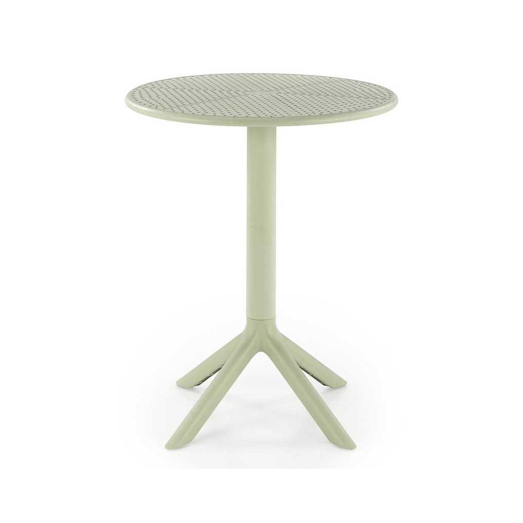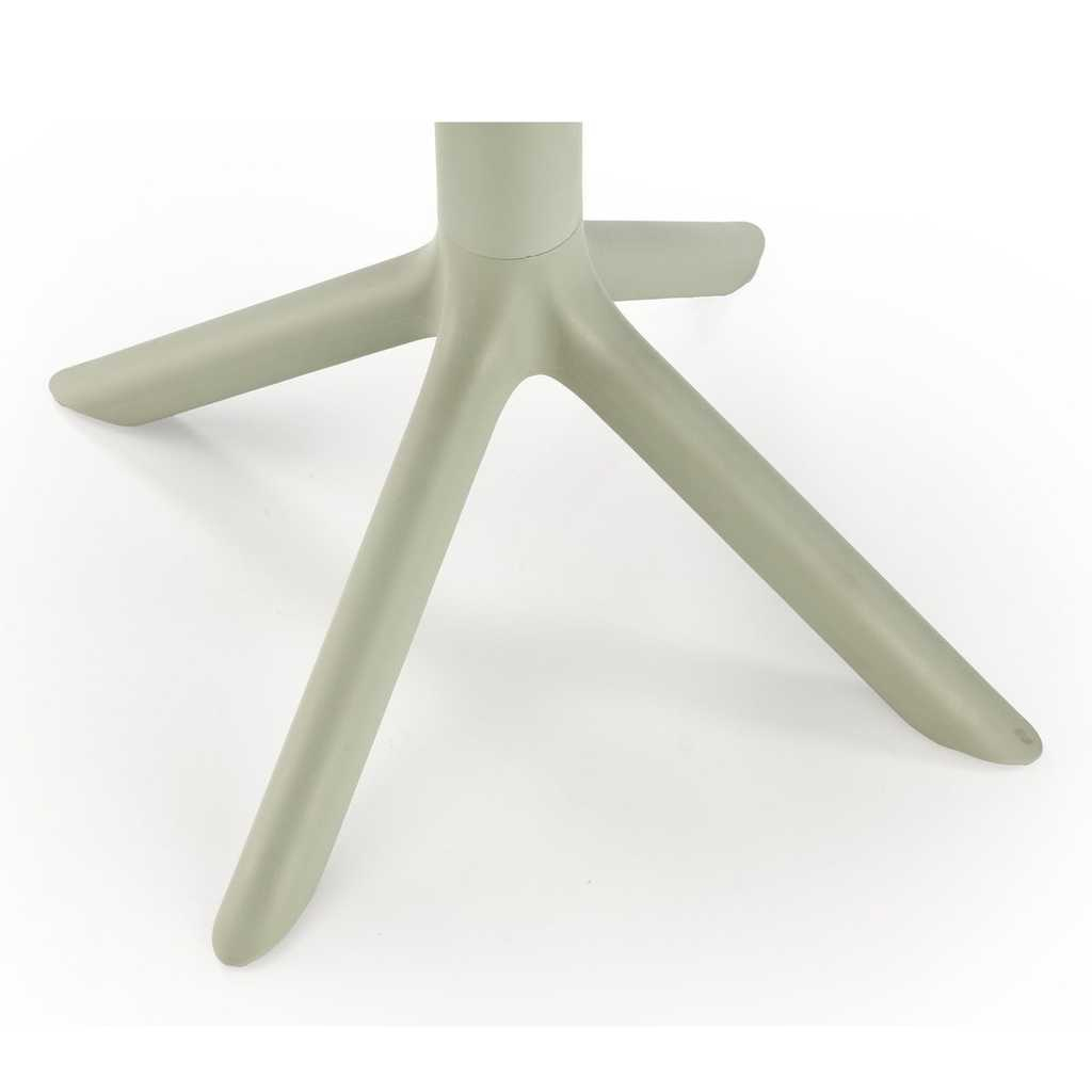Kulatou horní desku i podnož tvoří pevný plast. Tento materiál je známý svou dlouhou životností, odolností a v neposlední řadě také velmi snadnou údržbou. Stačí pár tahů vlhkým hadříkem a stůl je opět jako ze škatulky. Hodí se i pro venkovní použití.