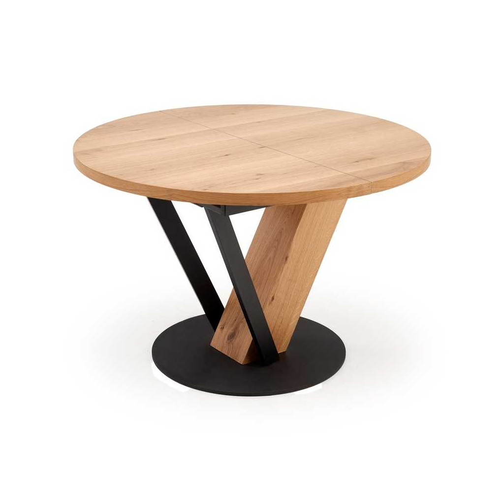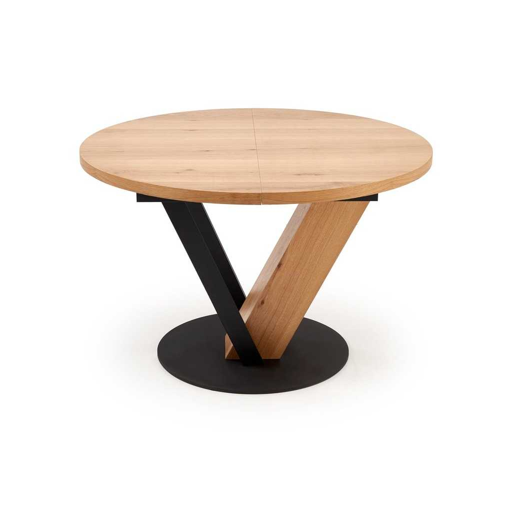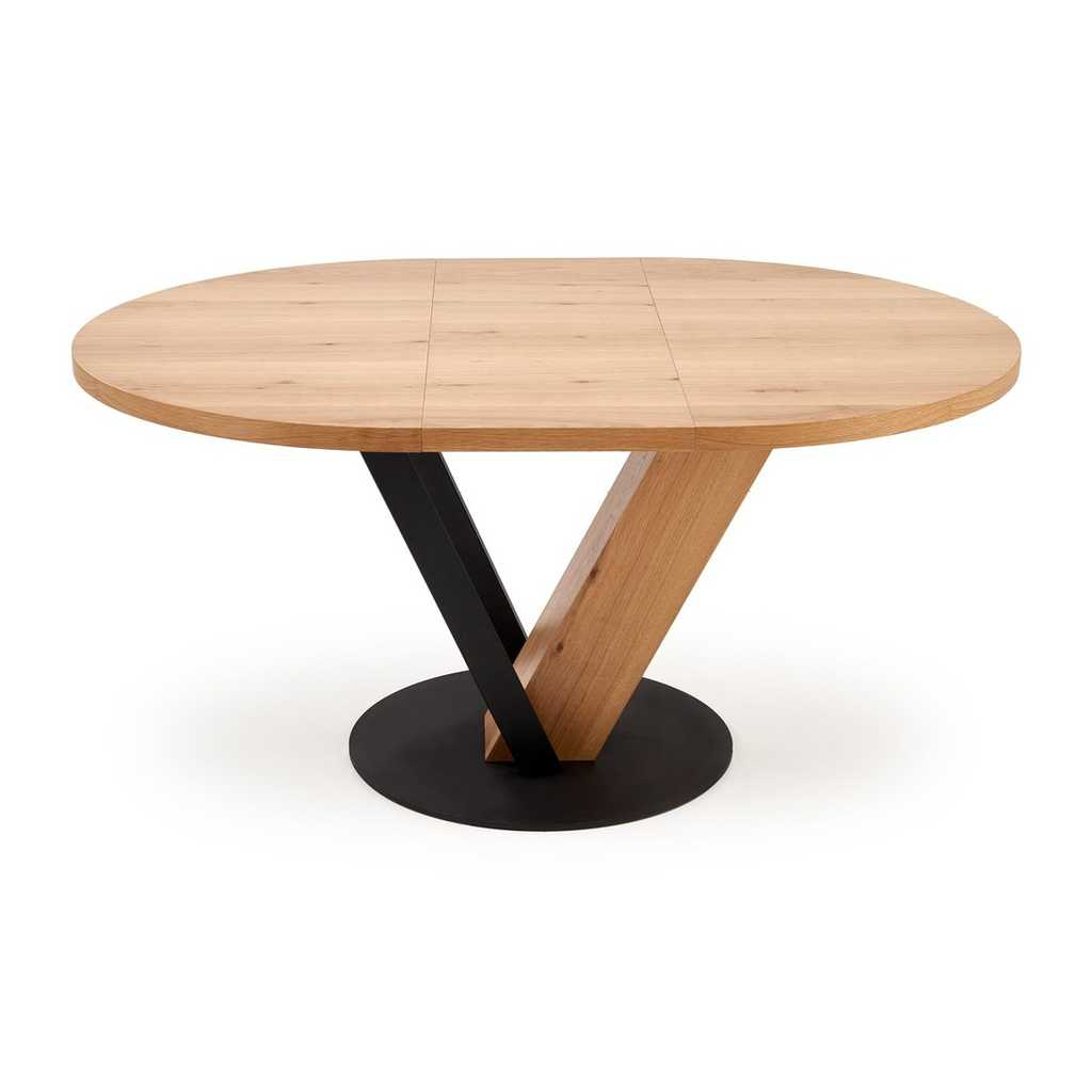 Jídelní stůl Medina - kulatý, 120-160 x 120 cm, dub / černá