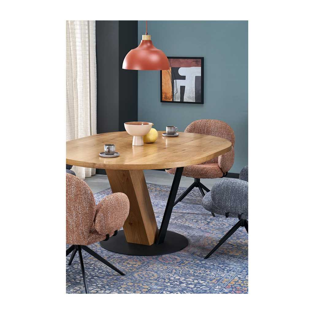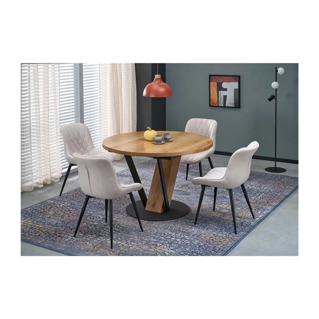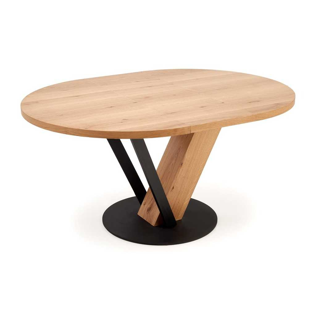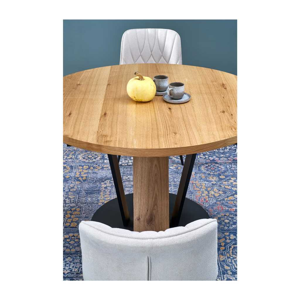 Jídelní stůl Medina - kulatý, 120-160 x 120 cm, dub / černá