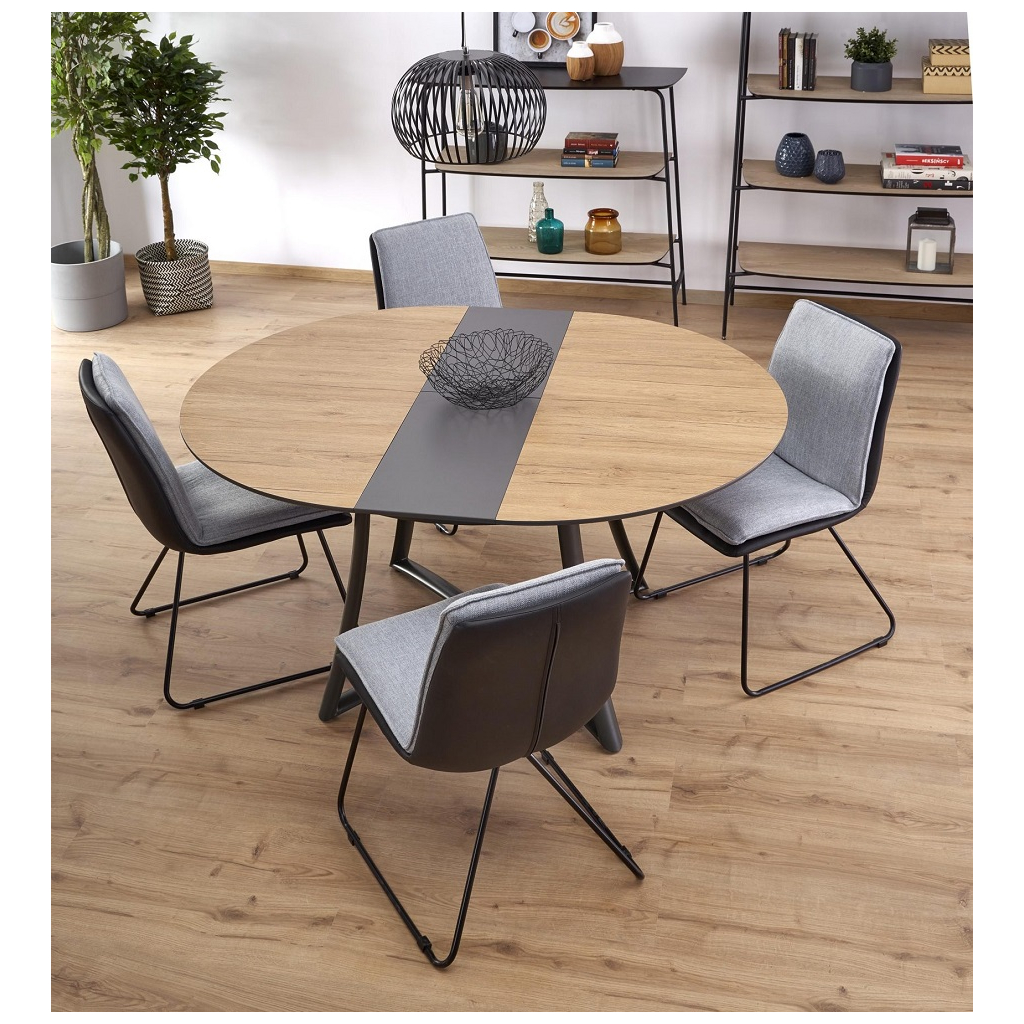 Stůl je specifický především elegantně tvarovanou konstrukcí, která je vyrobena z pevného kovu v černé barvě a zajistí tak celému stolu výbornou stabilitu. Největší předností stolu je však jeho dřevovláknitá deska, která je tvarovaná do kruhu a usadí se k ní 4 lidé.