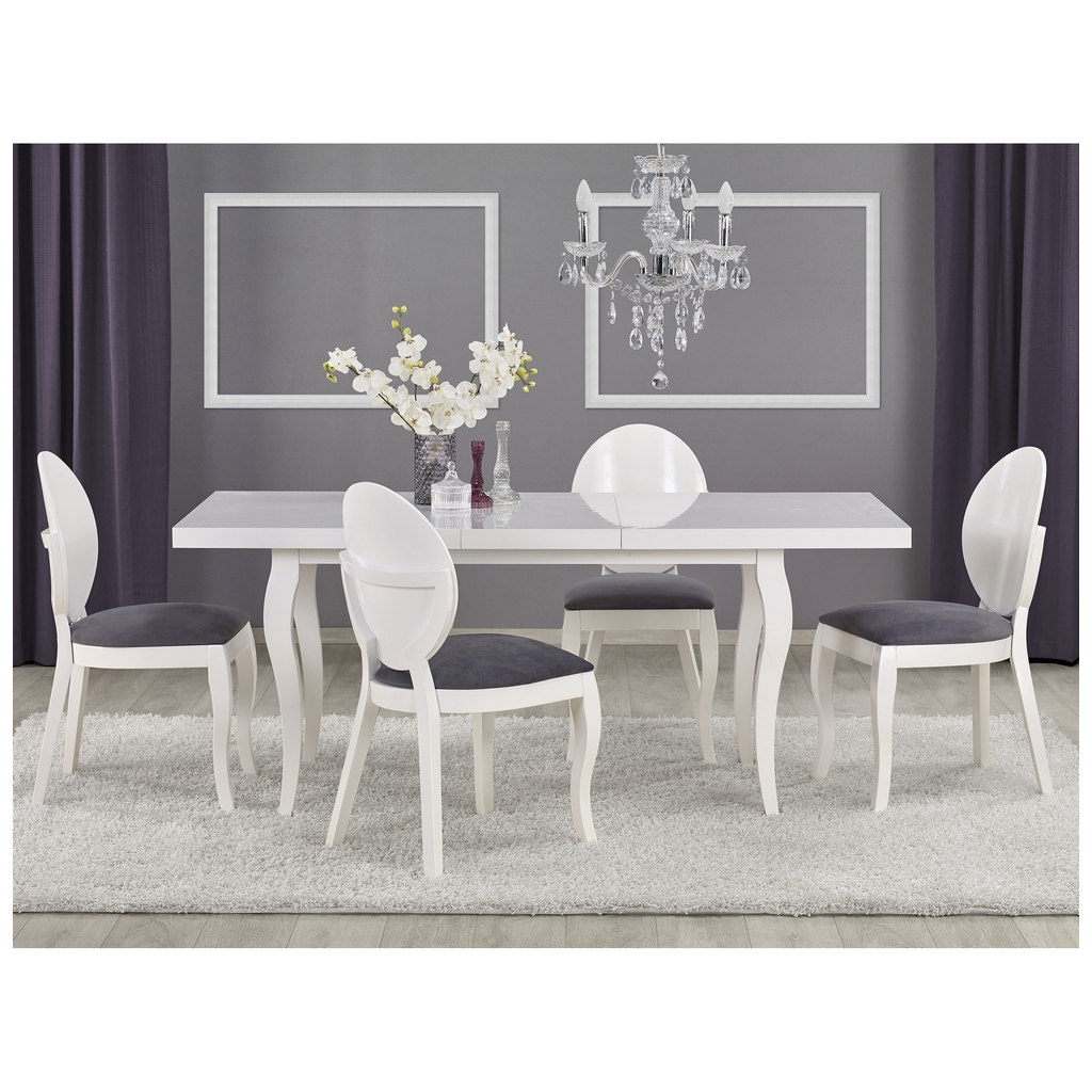 Stůl Mozart je sázkou na tradici – jeho prostý design, dekorativní zakřivení nohou a neutrální barva skvěle vyniknou po boku jiných barev.