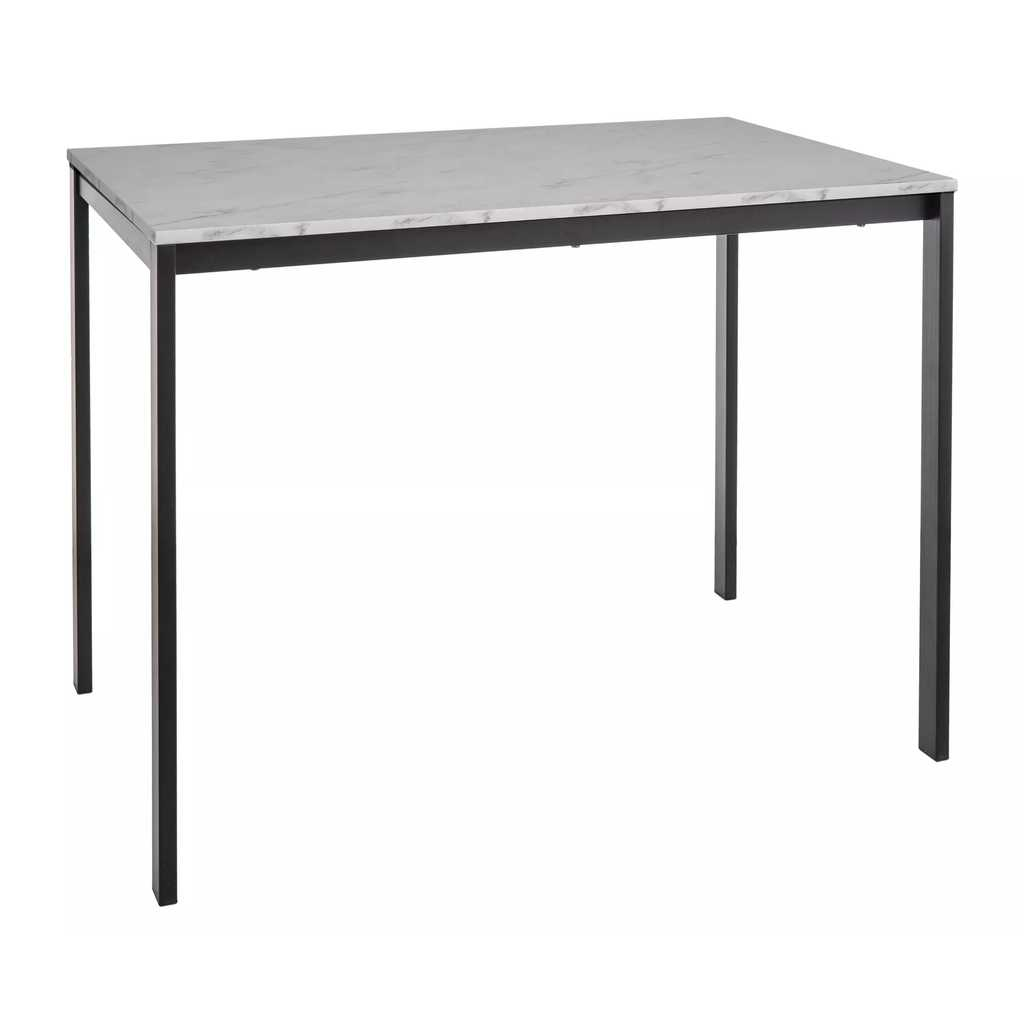 Díky kovové podnoži je stůl pevný a odolný, přičemž jeho rozměry 100 x 60 cm poskytují dostatek místa pro pohodlné stolování až pro čtyři osoby. Výška stolu 75 cm je standardní a vhodná pro většinu jídelních židlí. Nepřestává zaujmout ani jeho nízká hmotnost, která umožňuje snadnou manipulaci a přesun dle potřeby.