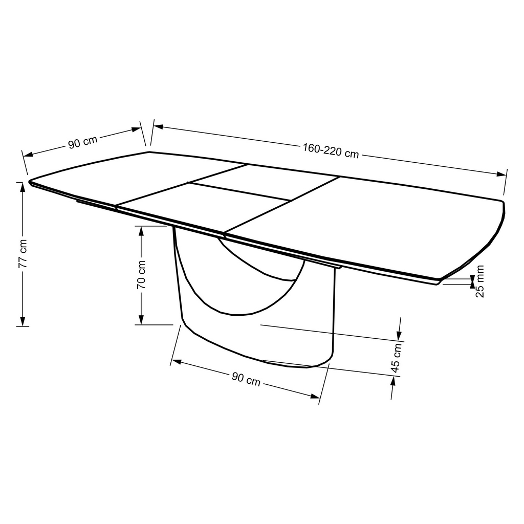 Na první pohled zaujme unikátní podnož z práškované ocele. Základna o rozměrech 90 × 45 cm stolu zajistí výbornou stabilitu.