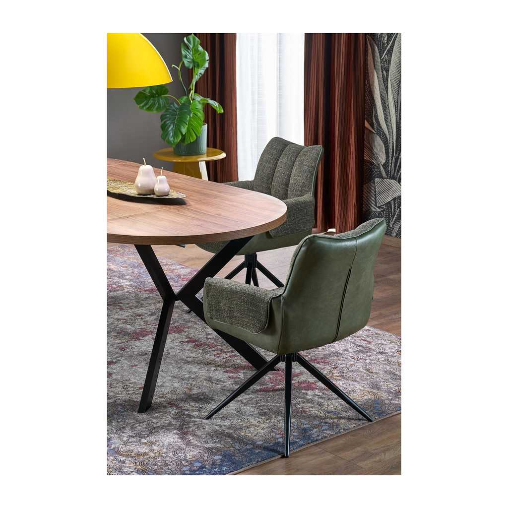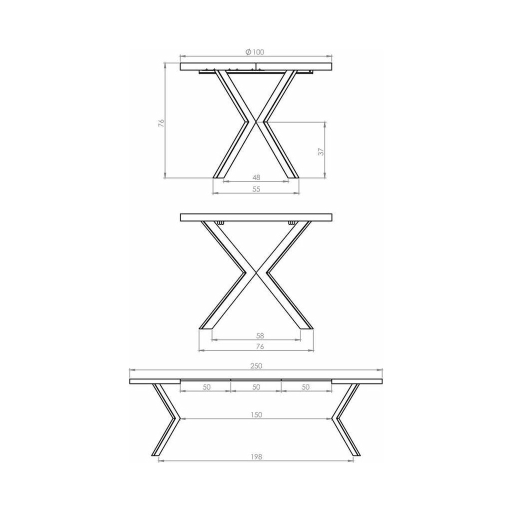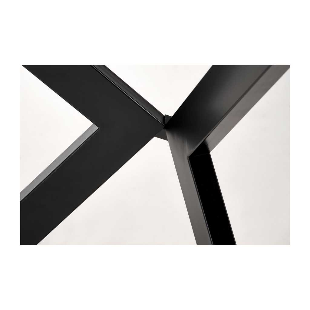 Podstavu stolu tvoří 4 překřížené nohy z pevné práškované oceli. Tyto nohy mají zajímavý vzdušný tvar, který dodává stolu nejen stabilitu, ale i unikátní vizuální charakter. Ocelová konstrukce skvěle kontrastuje s deskou, čímž vytváří sofistikovaný a zároveň moderní vzhled.