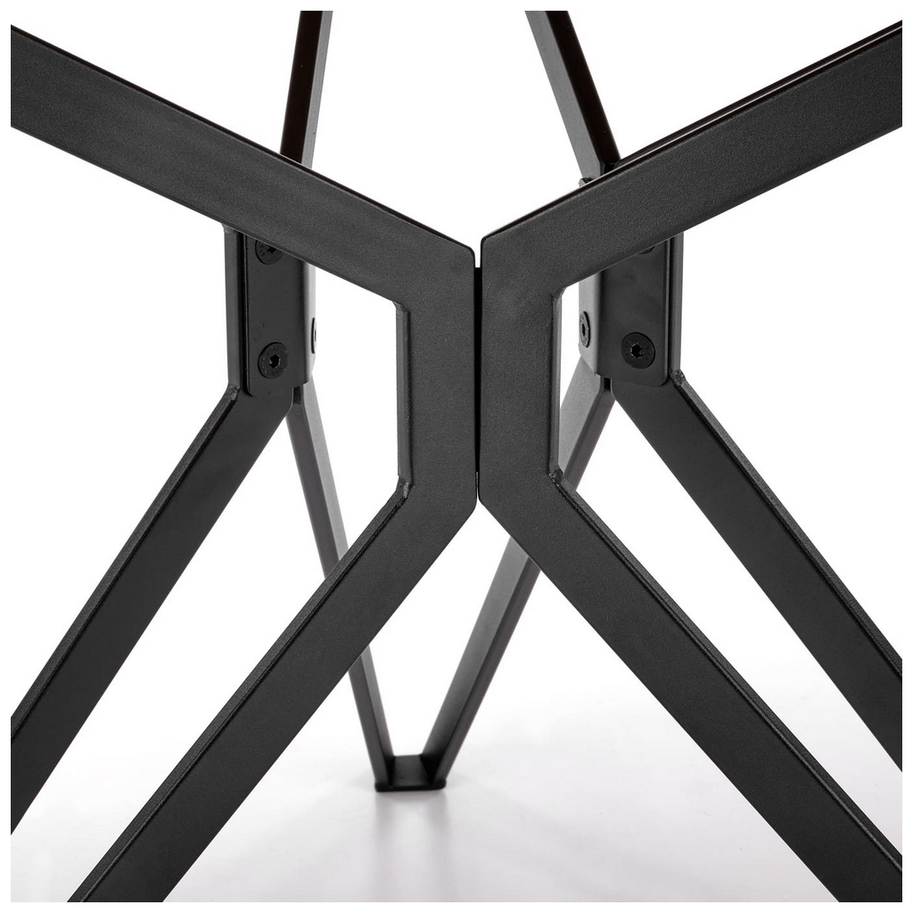 Podnož tvoří konstrukce z černé práškované ocele. Její geometrické pojetí vkusně ozvláštní design celého stolu. Ten si poradí se zátěží až 30 kg.