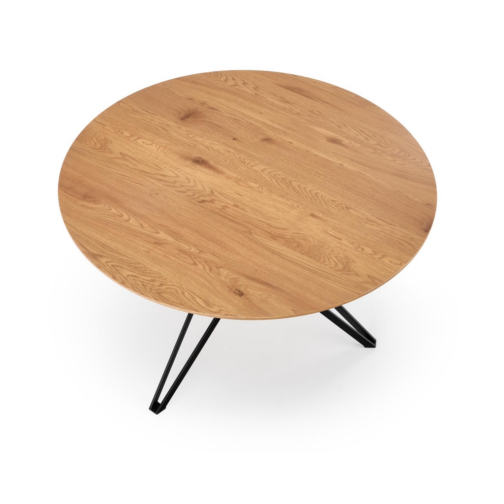 Kruhová deska o průměru 120 cm je vyrobená z laminovaného dřevovlákna a nachází se ve výšce 76 cm. Svou velikostí je ideální pro 3–4 osoby.