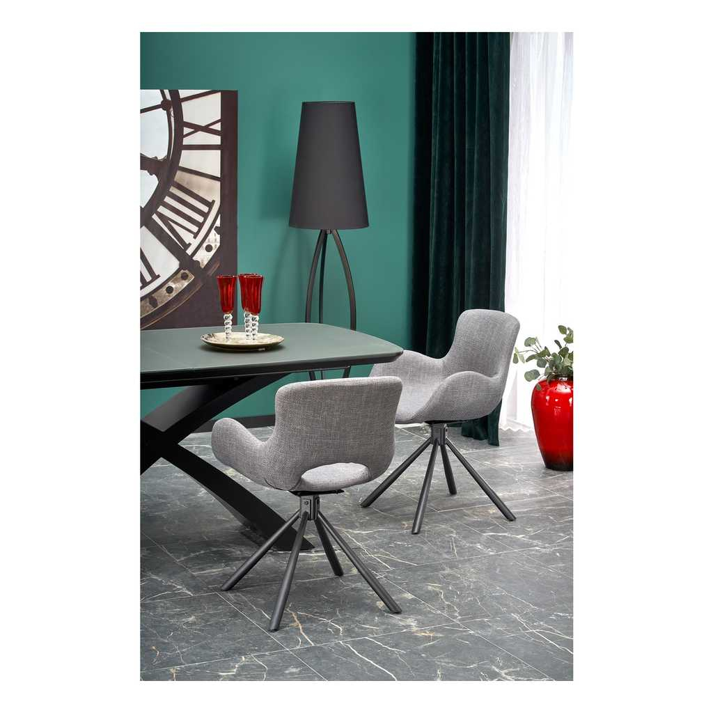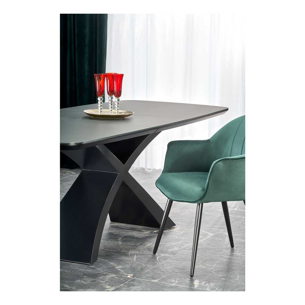 Deska stolu je vyrobena z kombinace MDF a skla, což dodává stolu nejen honosný vzhled, ale také vynikající odolnost a snadnou údržbu. Tento povrch je ideální pro každodenní používání, stejně jako pro speciální příležitosti. Dohromady má celek nosnost 40 kg.