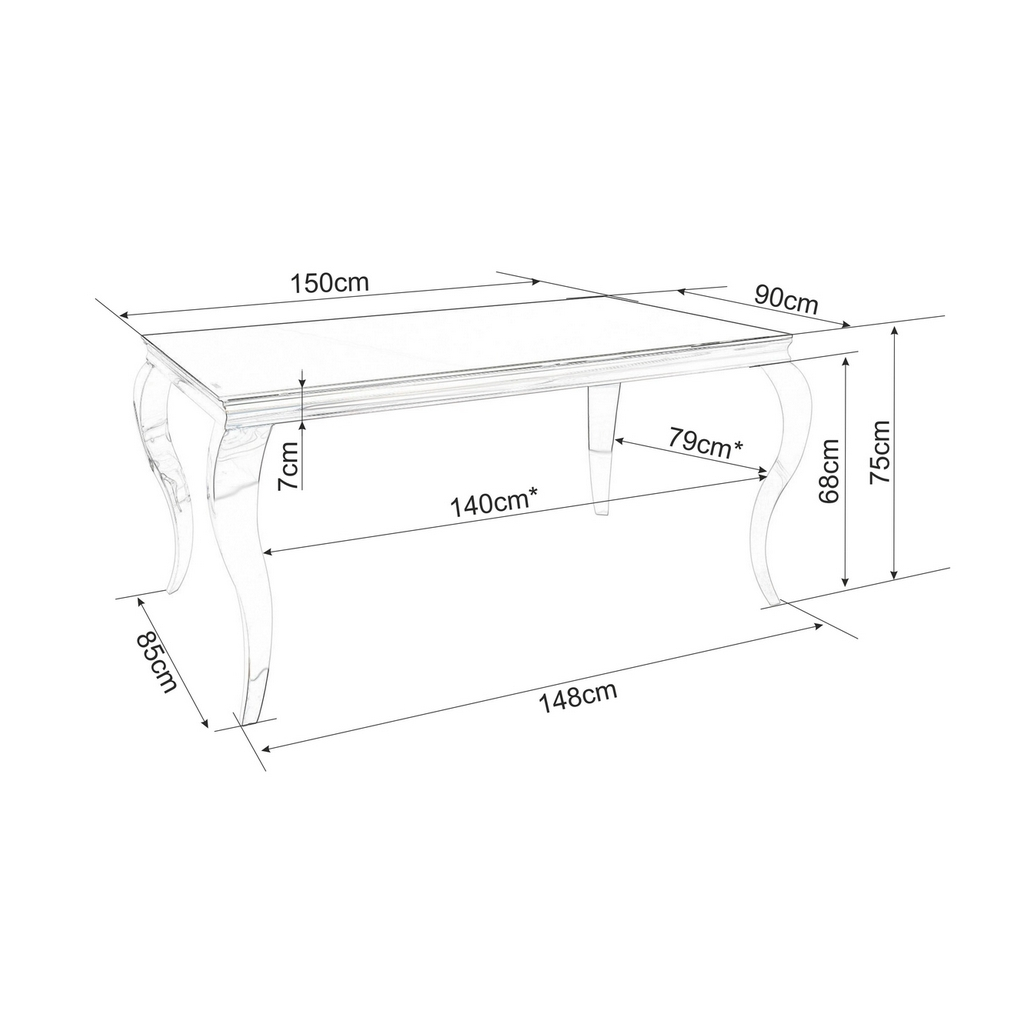 Kontrastující kovové nohy s rafinovanými křivkami nejen podtrhují moderní estetiku stolu, ale také zajišťují jeho stabilitu a pevnost. Dohromady celek připomíná nábytek šlechtického sídla.