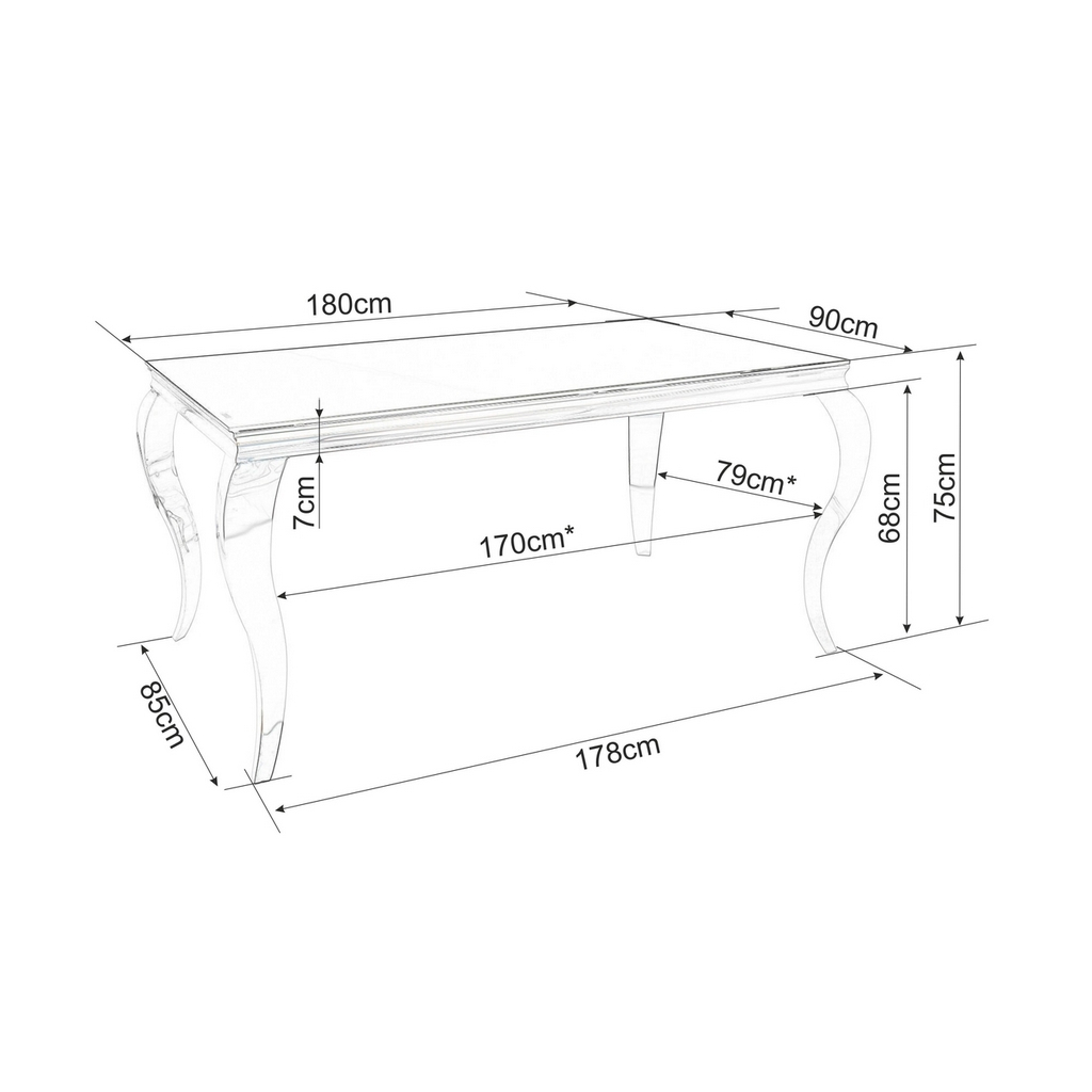 Kontrastující kovové nohy s rafinovanými křivkami nejen podtrhují moderní estetiku stolu, ale také zajišťují jeho stabilitu a pevnost. Dohromady celek připomíná nábytek šlechtického sídla.
