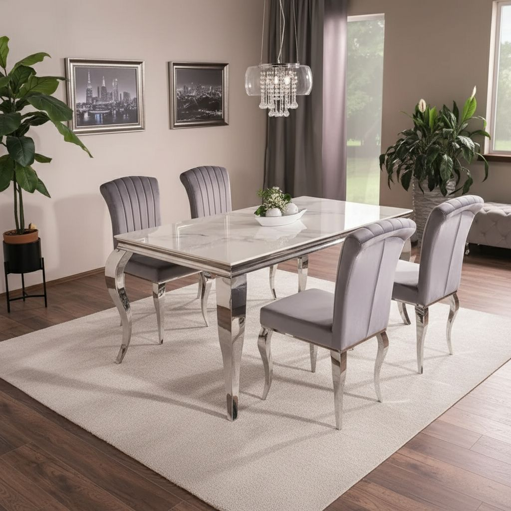 Jídelní stůl Prince II 150 x 90 cm, mramor / stříbrná