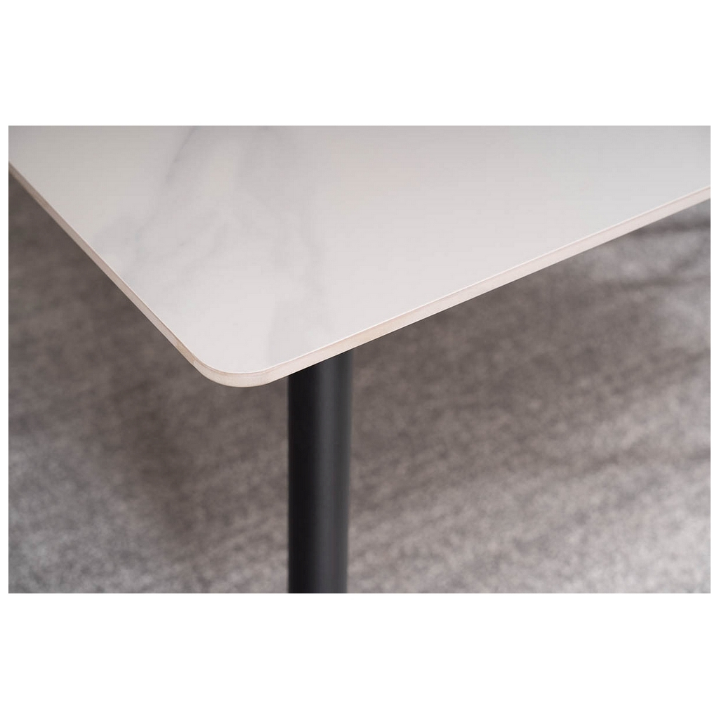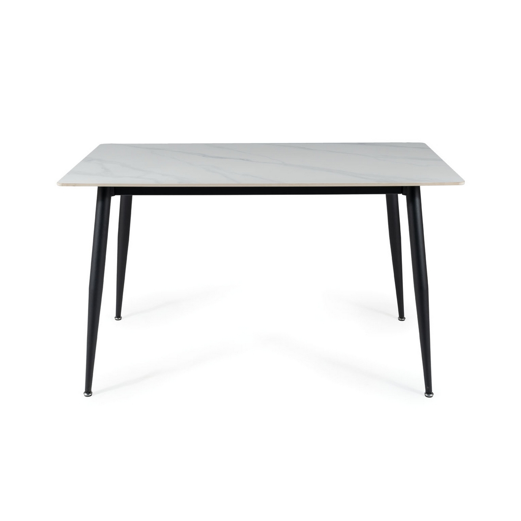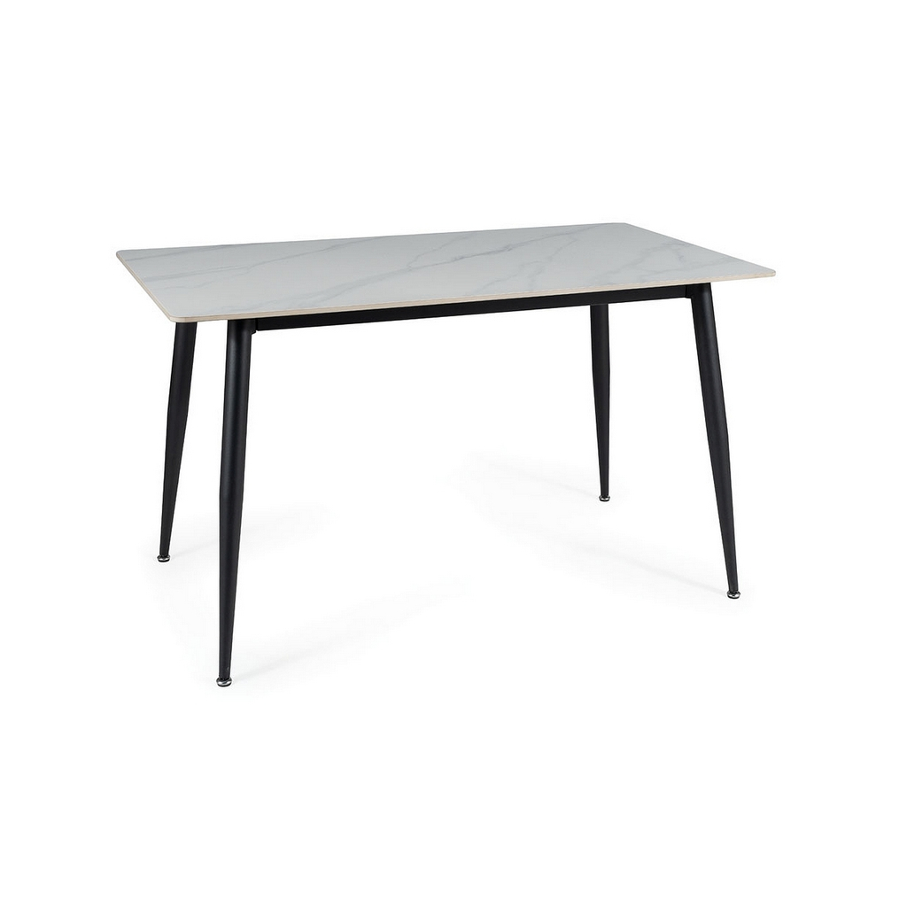 Jeho lesklá obdélníková deska z keramiky s jemným vzhledem mramoru je protikladem k černým nohám. Ty tvoří kov, kromě nadčasového designu tak nabízejí i stabilní podporu.