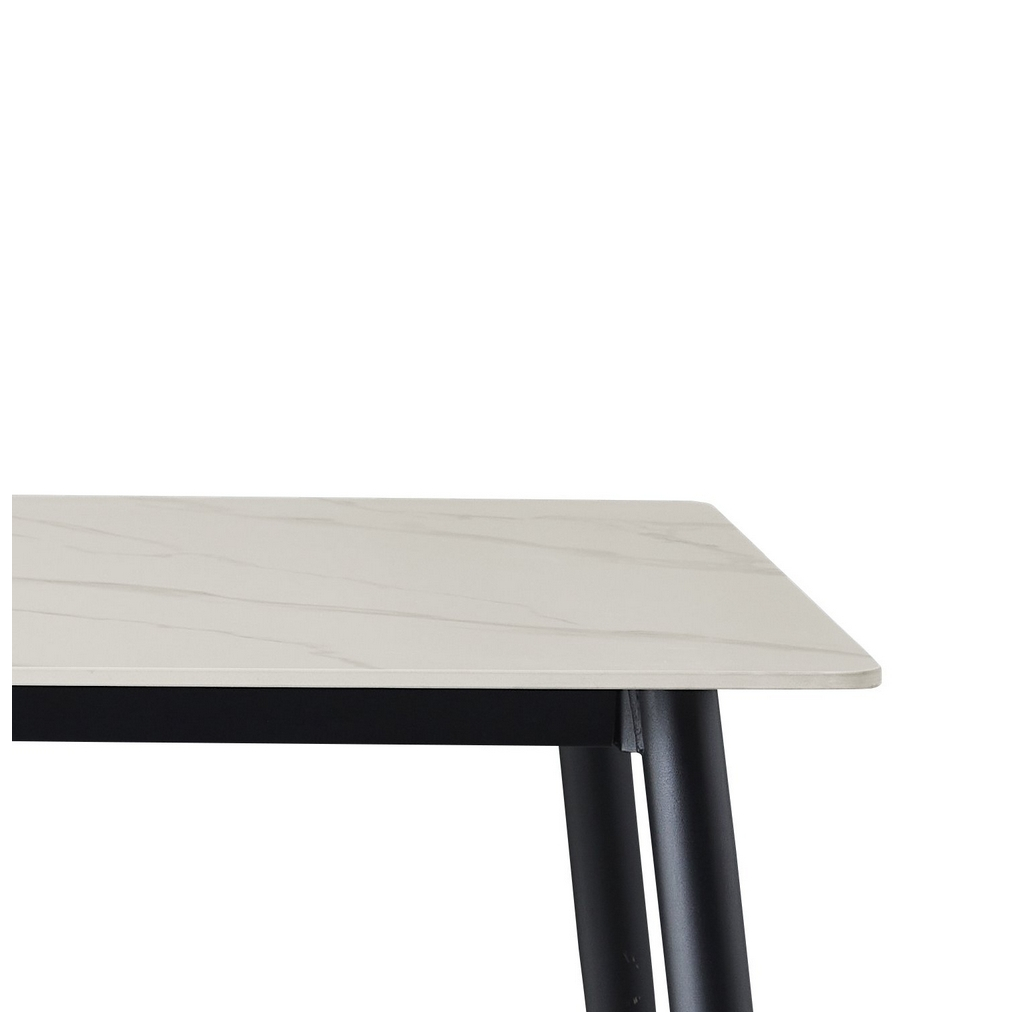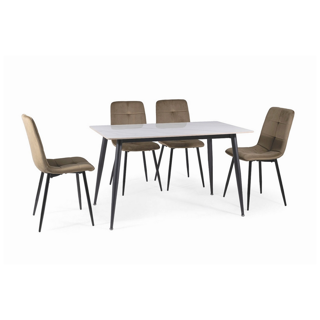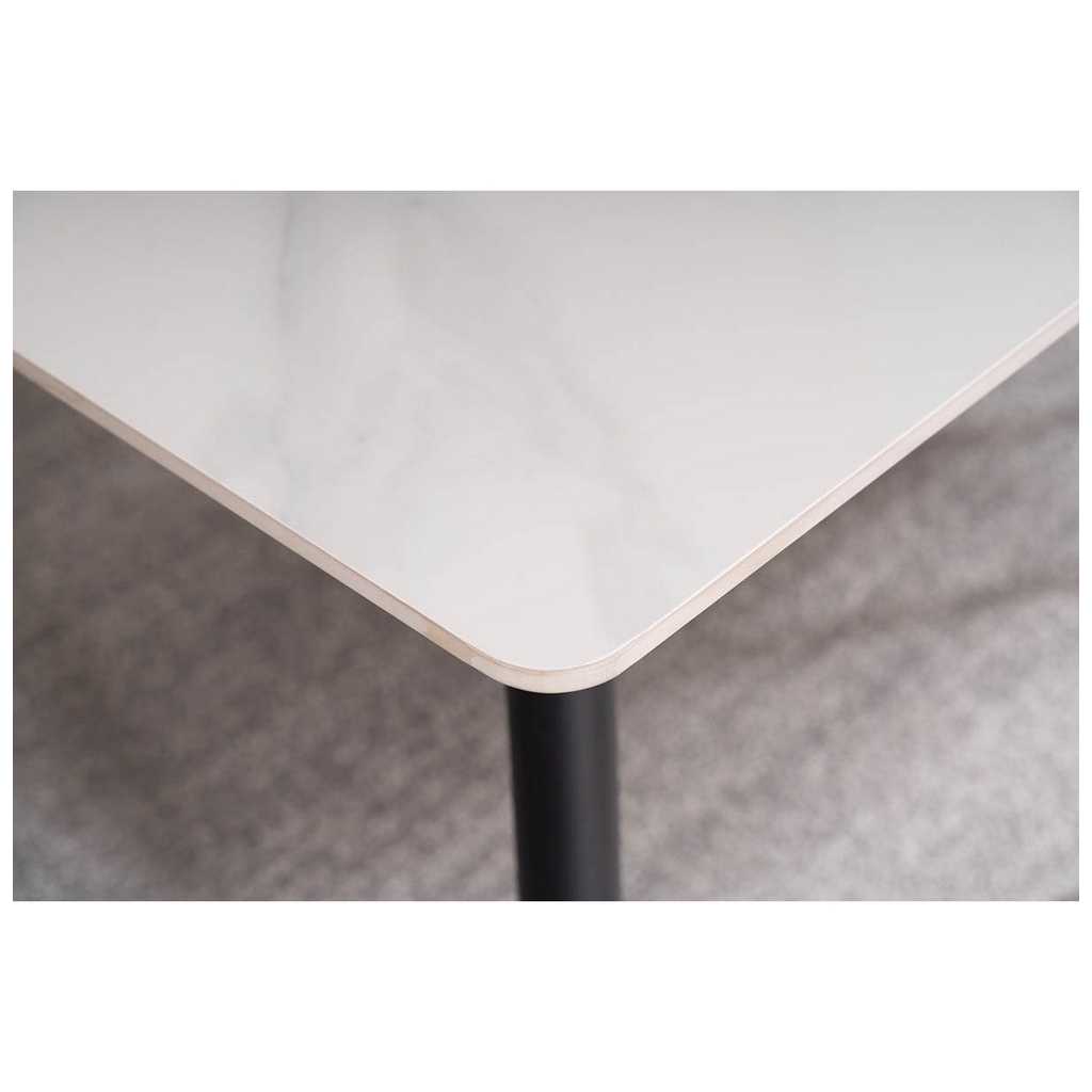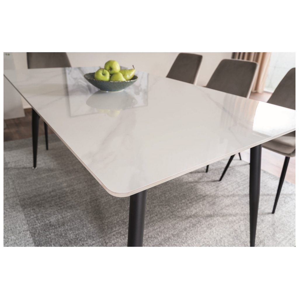 Jeho lesklá obdélníková deska z keramiky s jemným vzhledem mramoru je protikladem k černým nohám. Ty tvoří kov, kromě nadčasového designu tak nabízejí i stabilní podporu.
