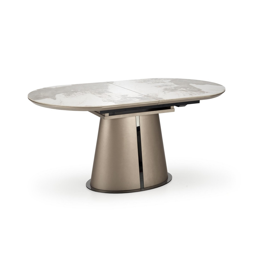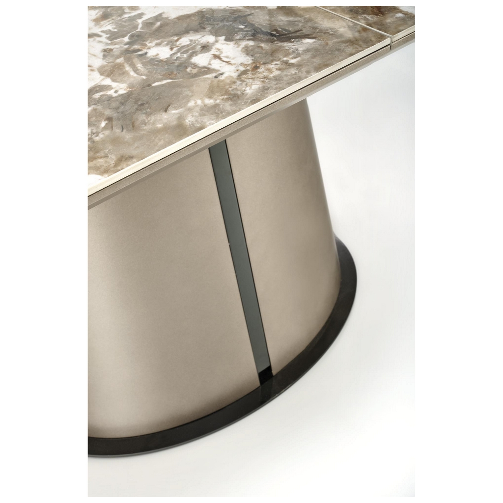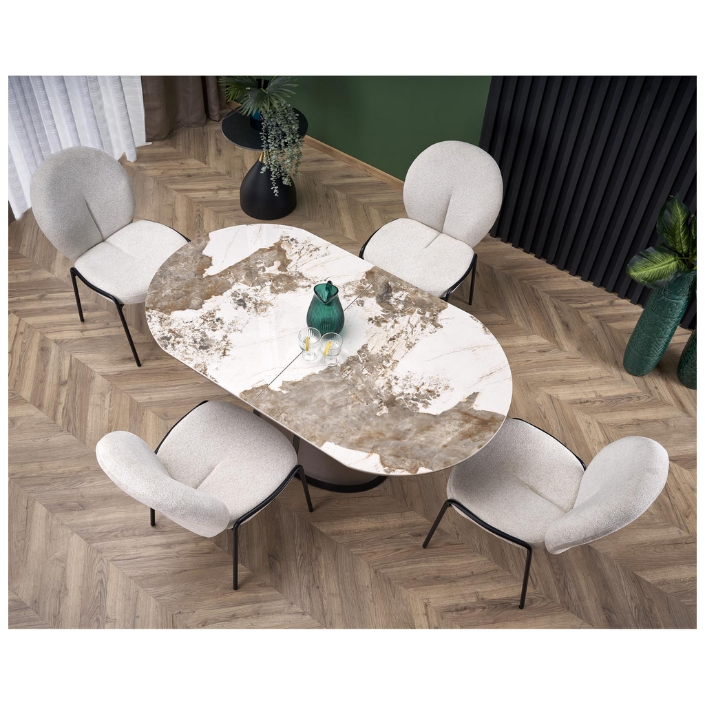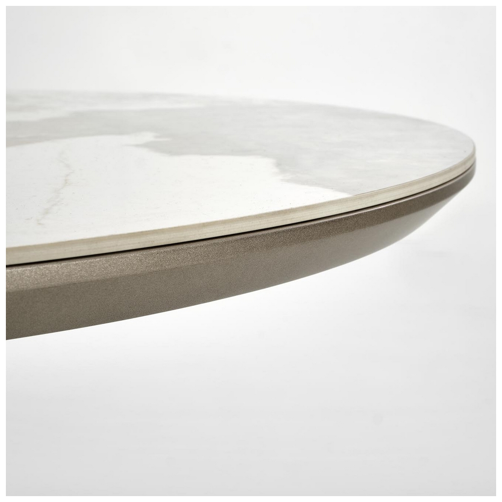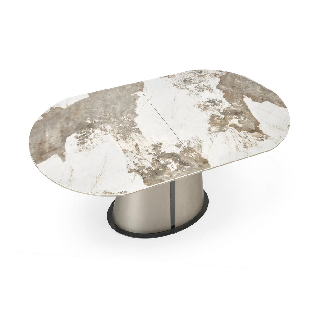 Hlavním poznávacím znamením je keramická deska stolu s unikátní mramorovanou texturou. Ta se vkusně doplňuje se zbytkem konstrukce, který je z lakovaných MDF desek a práškované ocele.