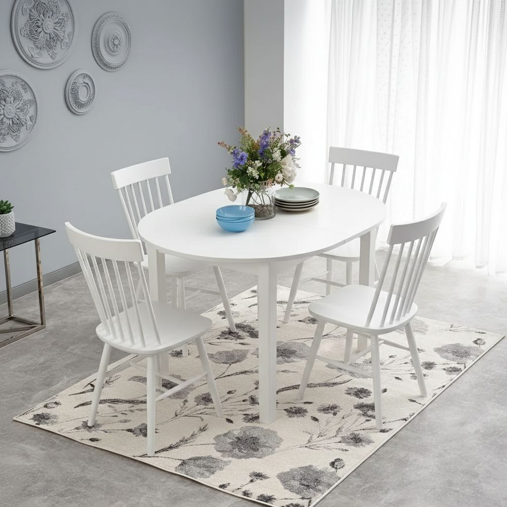 Ten je chytrým řešením do menších jídelen, kde občas čekáte návštěvy. Deska má v nerozloženém stavu tvar kruhu o průměru 102 cm, v případě potřeby ale stůl snadno přídavnou deskou prodloužíte na 142 cm. Těmito rozměry je ideální pro 4-6 osob.
