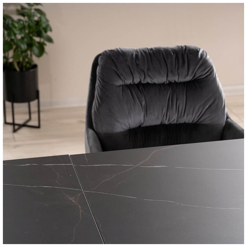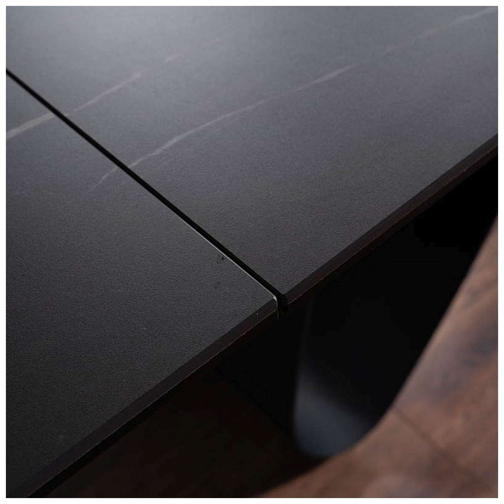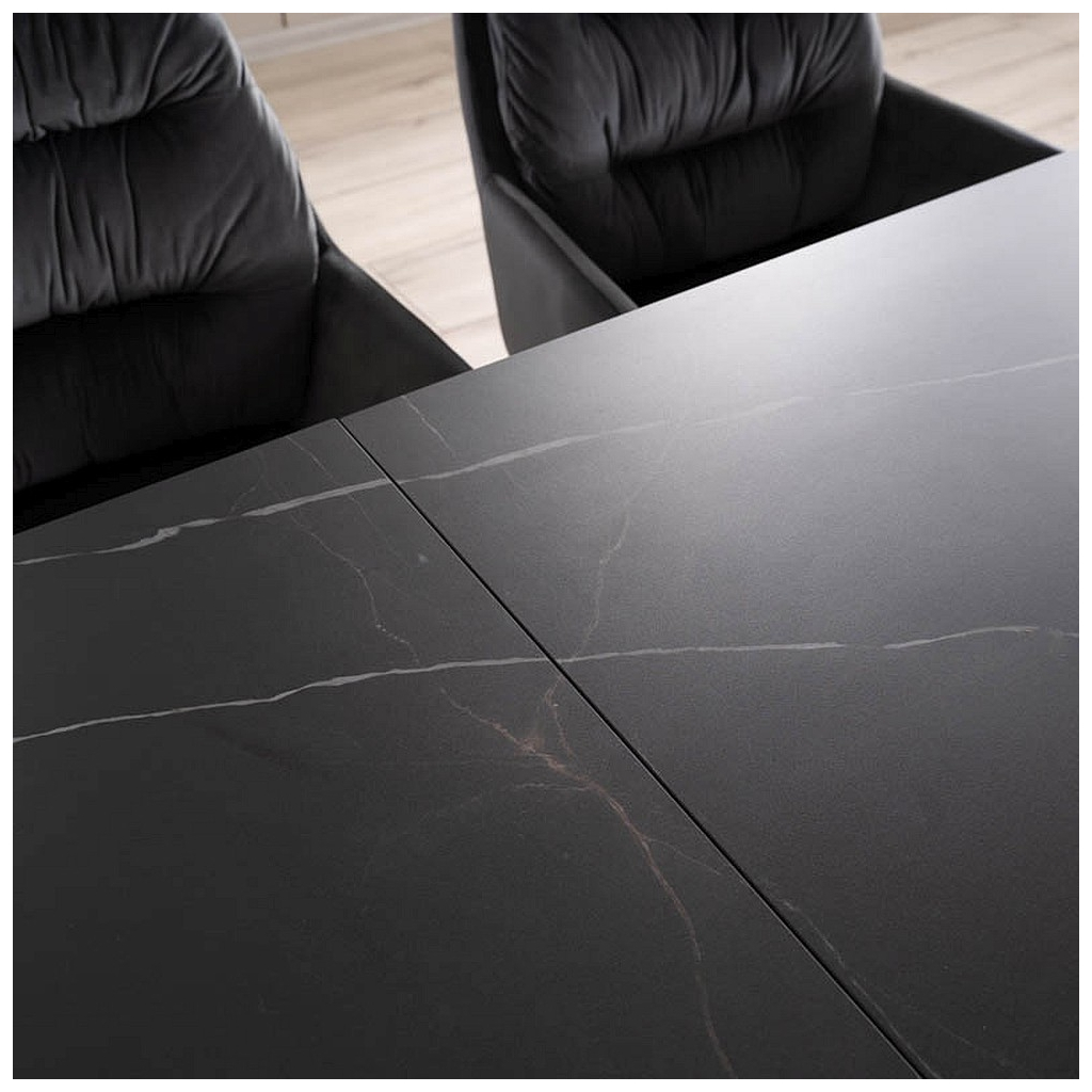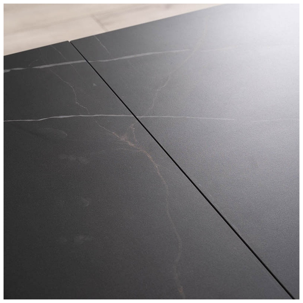Horní deska stolu Salvadore je vyrobená z kombinace tvrzeného skla a keramiky. Stůl se díky tomu jednoduše čistí a dodává stolu elegantní vzhled. Každá barevná varianta má svou unikátní texturu.