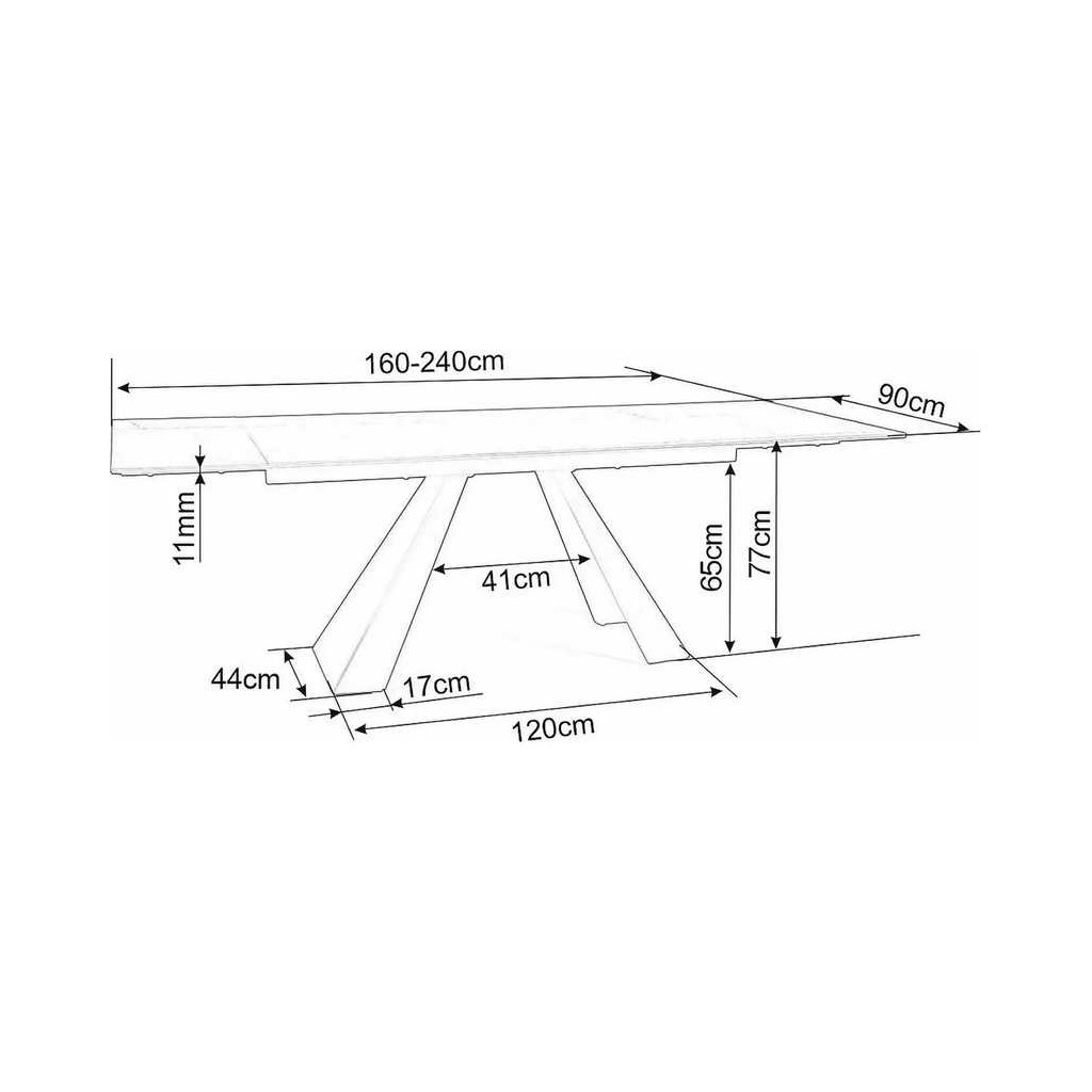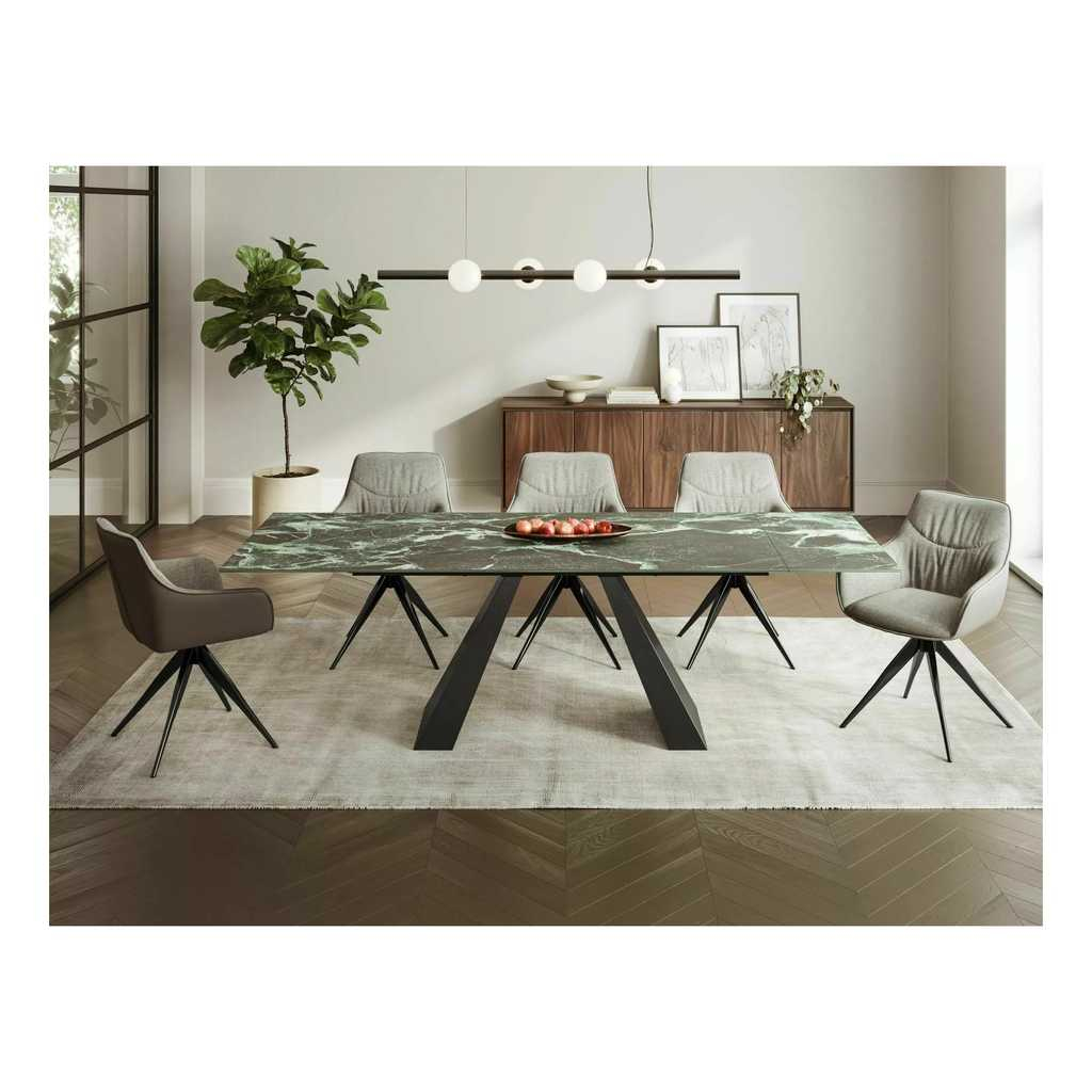 Horní deska stolu Salvadore je vyrobená z kombinace tvrzeného skla a keramiky. Stůl se díky tomu jednoduše čistí a dodává stolu elegantní vzhled. Každá barevná varianta má svou unikátní texturu.