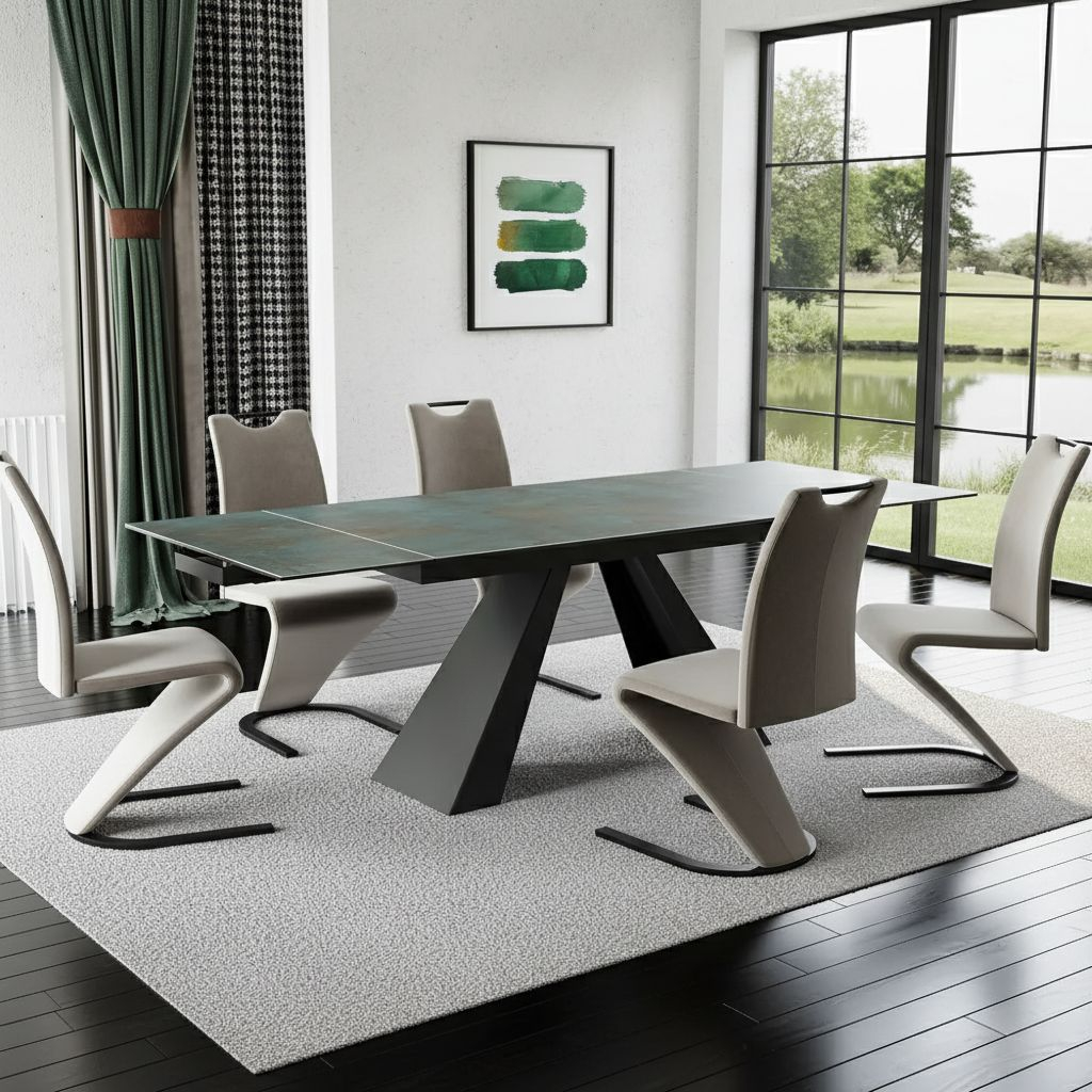 Horní deska stolu Salvadore je vyrobená z kombinace tvrzeného skla a keramiky. Stůl se díky tomu jednoduše čistí a dodává stolu elegantní vzhled. Každá barevná varianta má svou unikátní texturu.