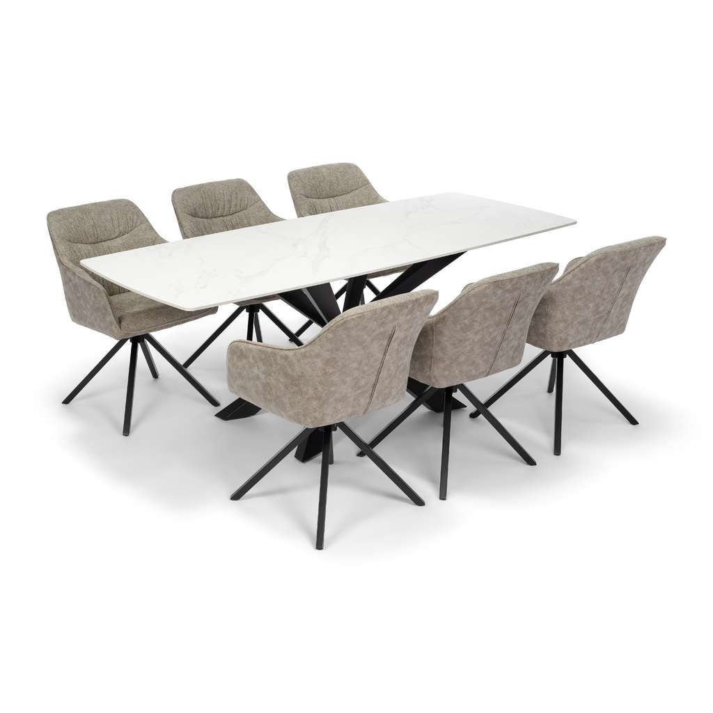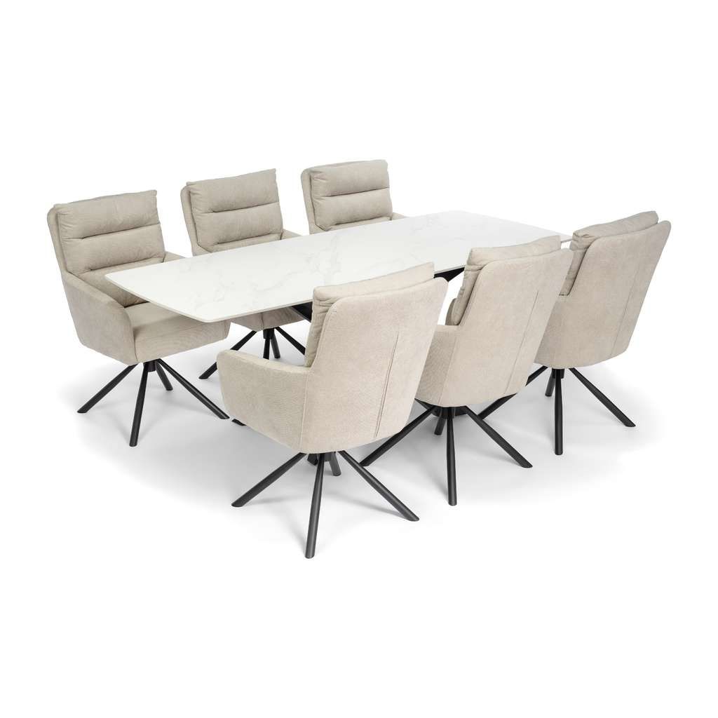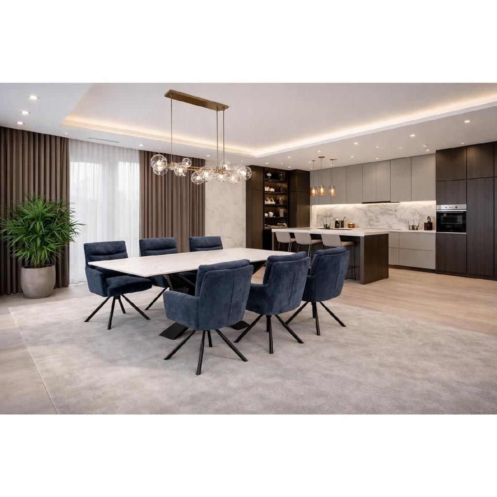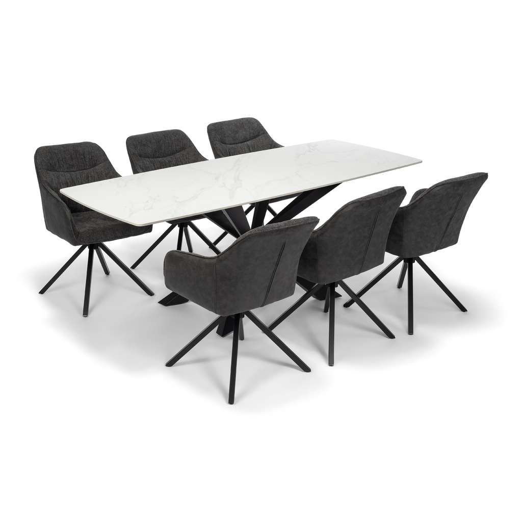 Jídelní stůl Serdan představuje ideální volbu pro ty, kteří hledají kombinaci moderního designu a kvalitního provedení. Díky robustní kamenné desce je nejen odolný vůči poškození, ale také působí velmi elegantně a luxusně. Velká plocha stolu o rozměrech 200x80 cm poskytuje dostatek místa pro pohodlné stolování až pro osm osob.