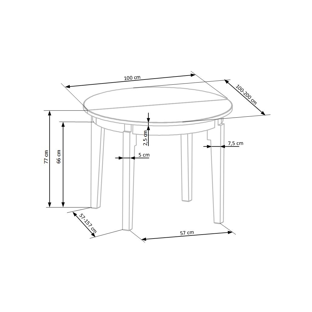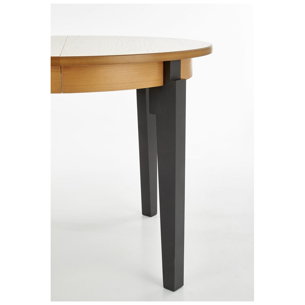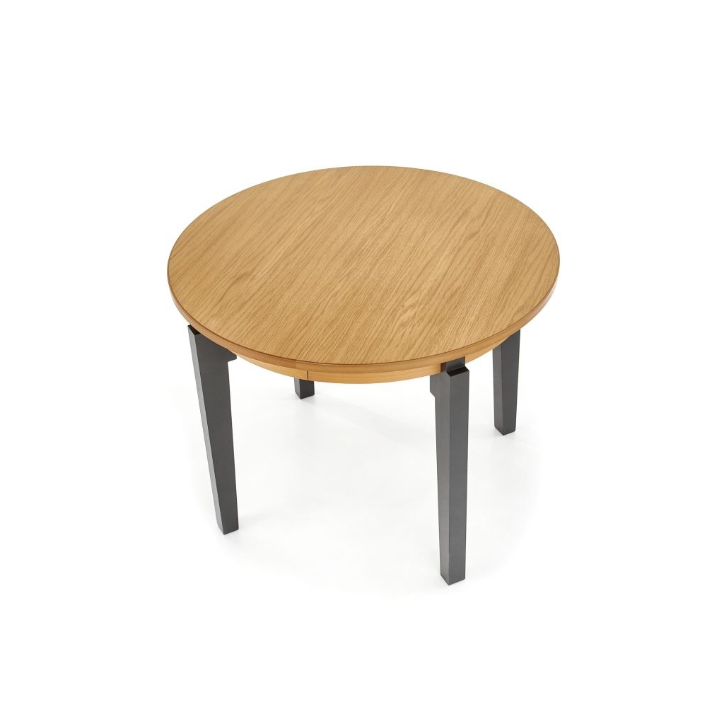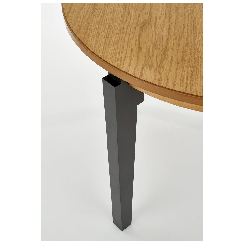 Vrchní deska stolu je vyrobená z MDF s přírodní dýhou v odstínu dubu medového. Výhodou kulatého tvaru desky je úspora prostoru v interiéru.
