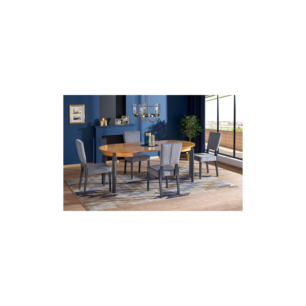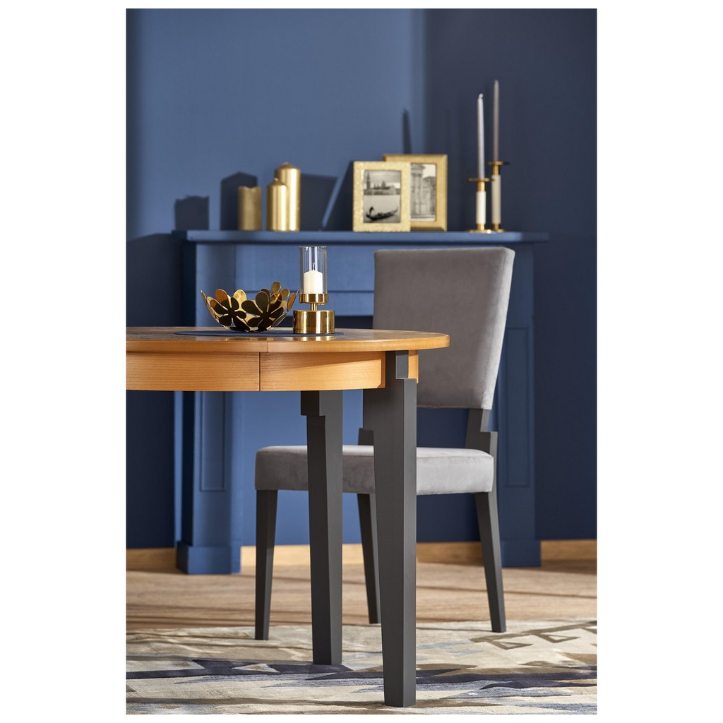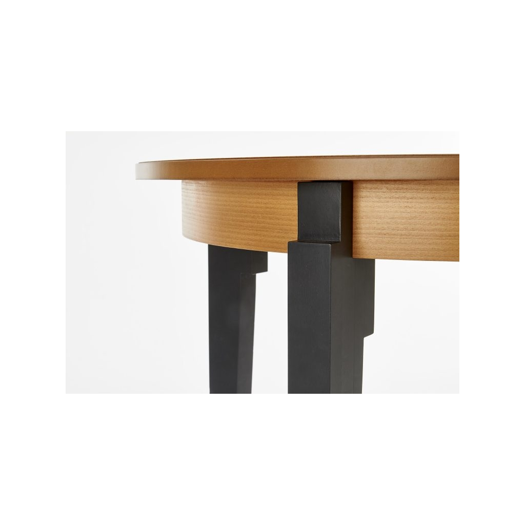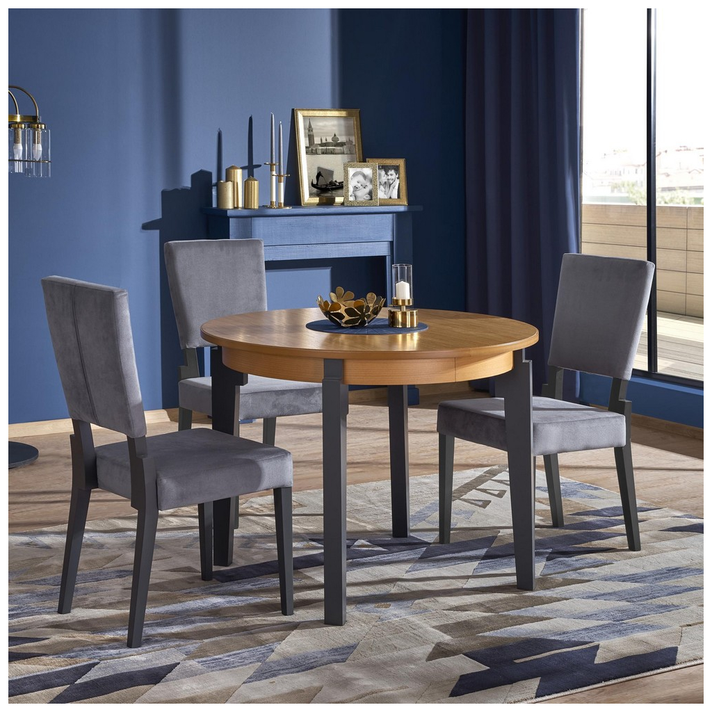 Vrchní deska stolu je vyrobená z MDF s přírodní dýhou v odstínu dubu medového. Výhodou kulatého tvaru desky je úspora prostoru v interiéru.