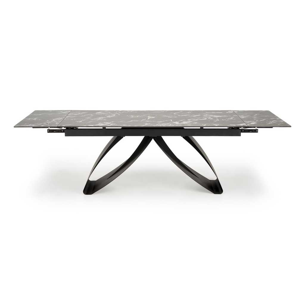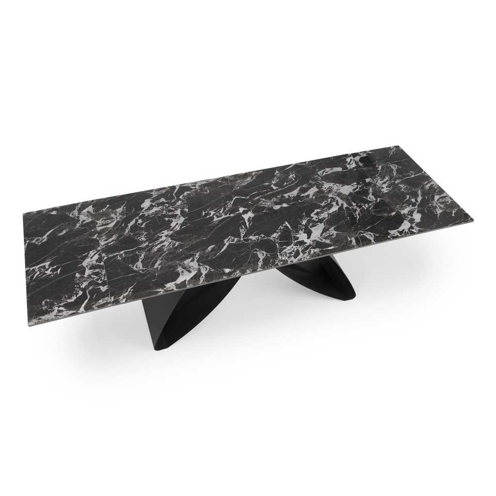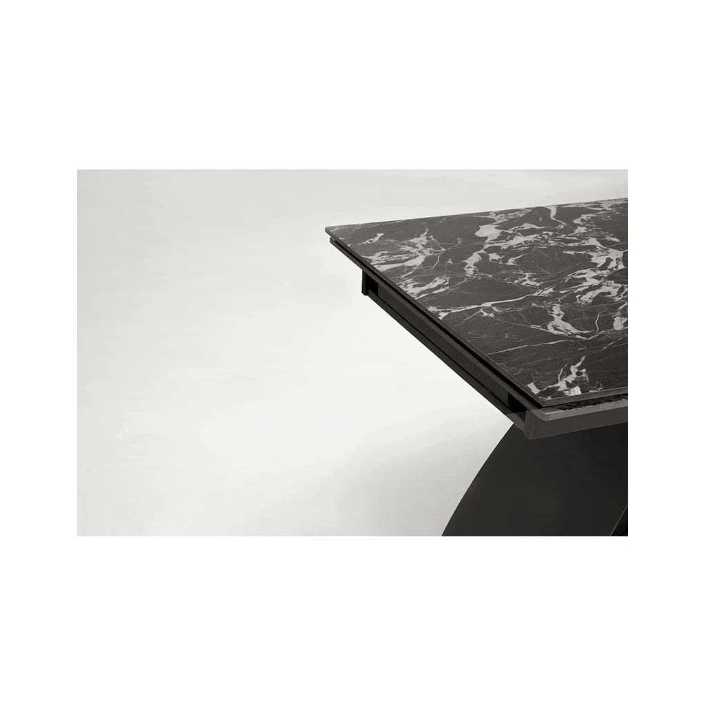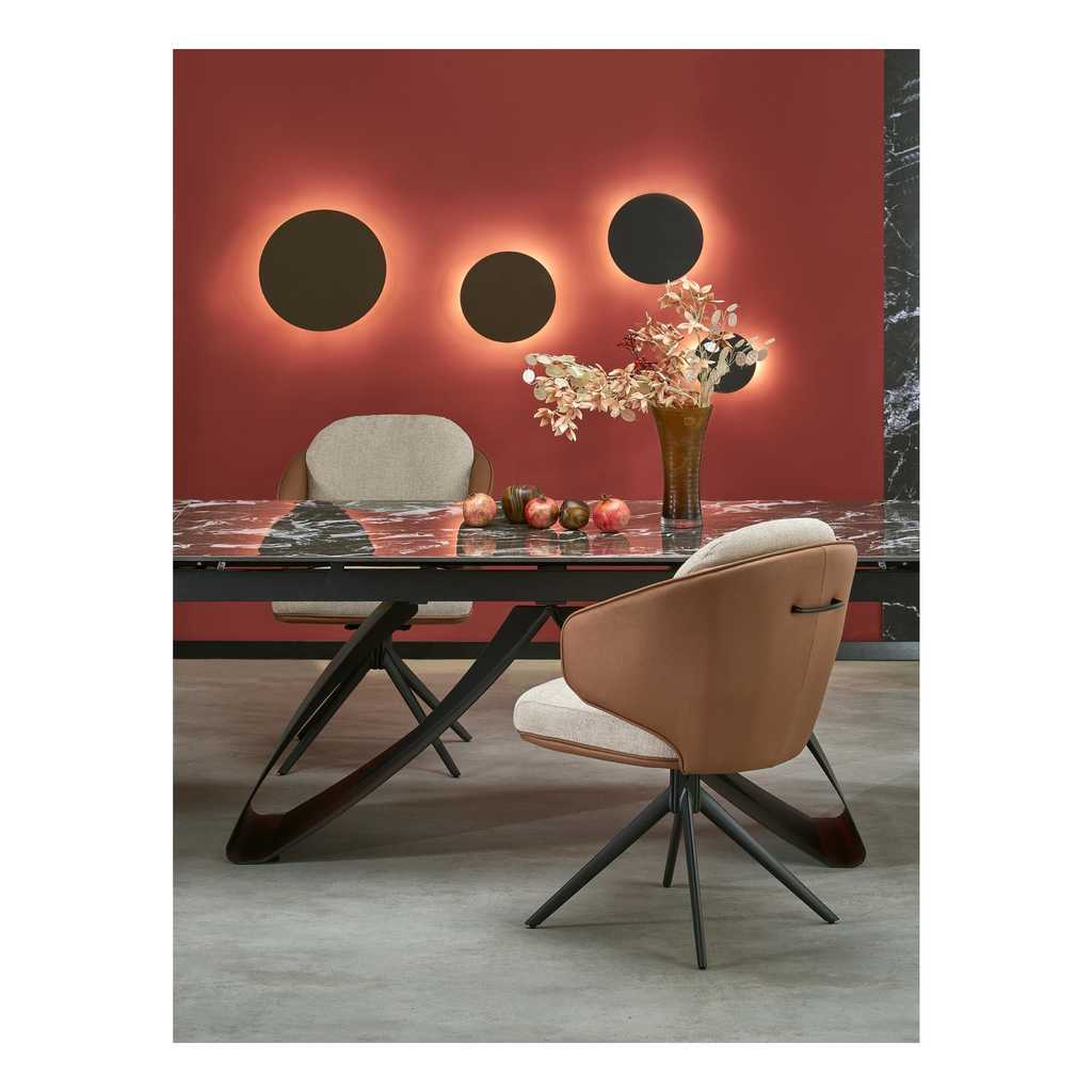 Deska stolu je vyrobená ze sintru s efektem mramoru. Toto spojení tvoří mimořádně odolný, ale i vizuálně úchvatný povrch vhodný jak pro každodenní používání, tak pro speciální příležitosti.