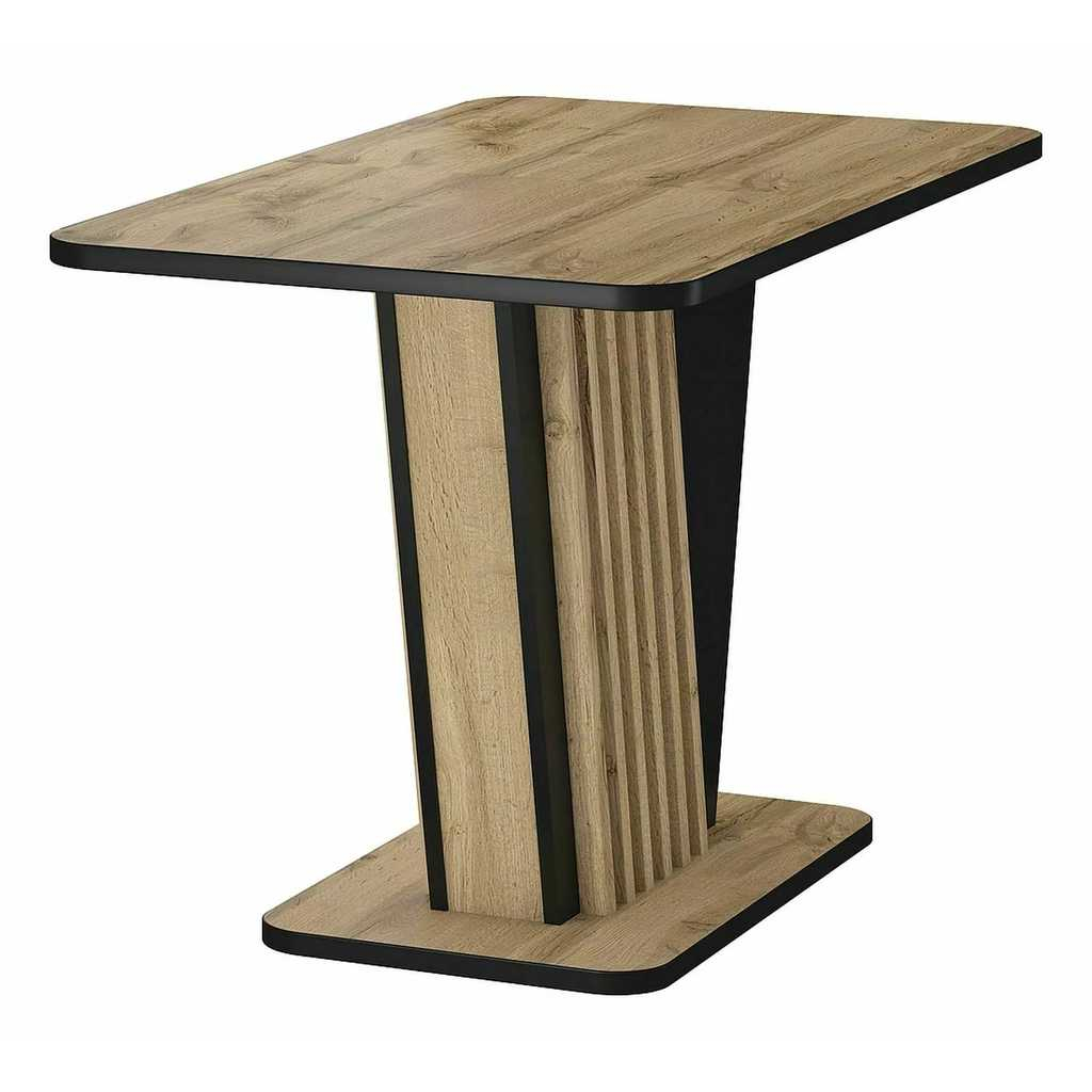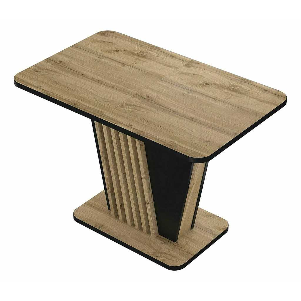 Všechny desky jsou z laminované dřevotřísky ve vkusné barevné kombinaci. Před rozložením má horní deska délku 125 cm a hloubku 75 cm – ideální pro 4 osoby.