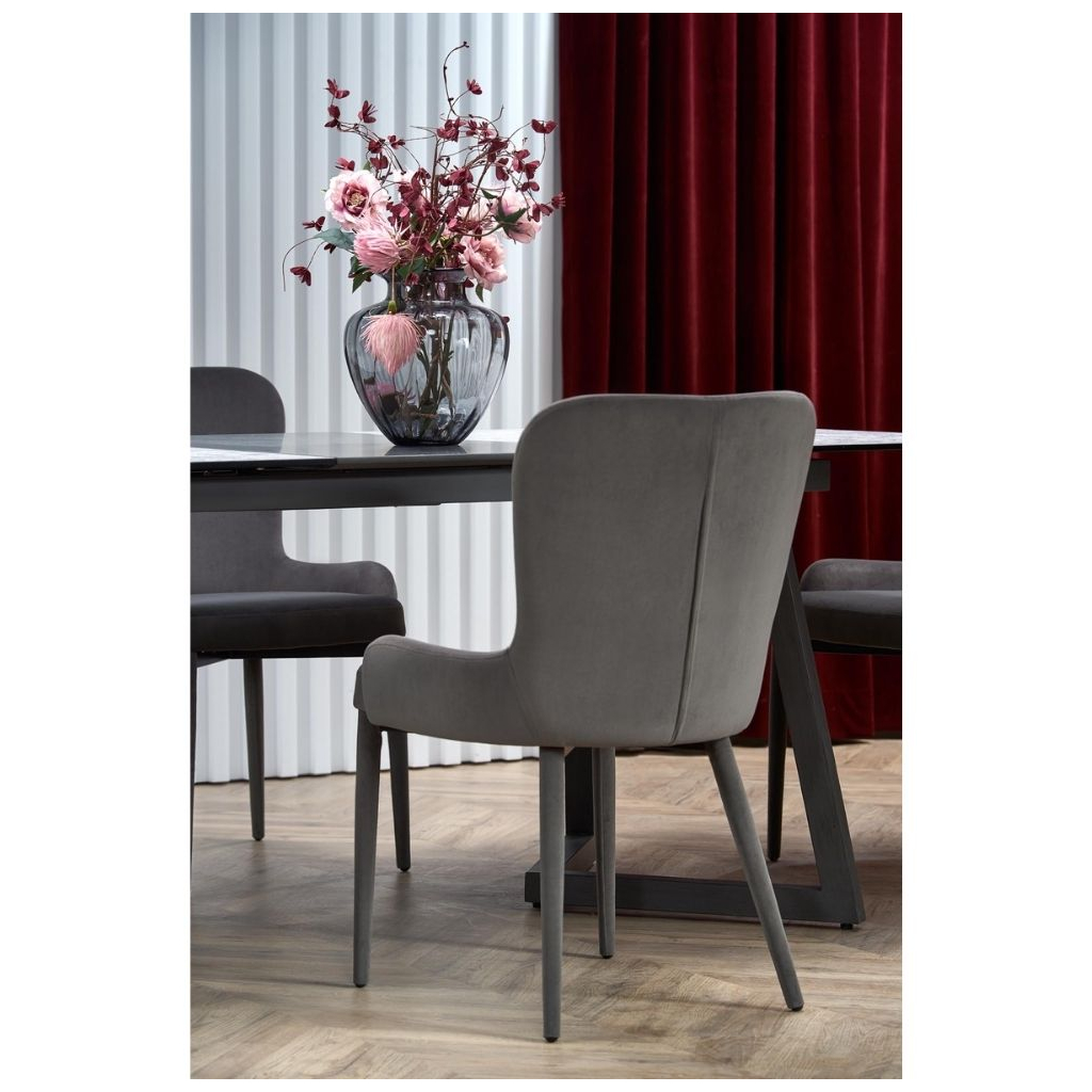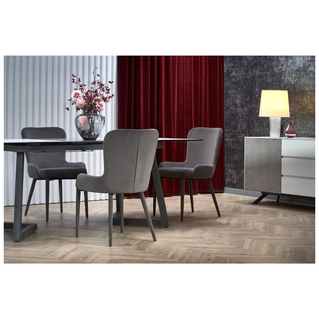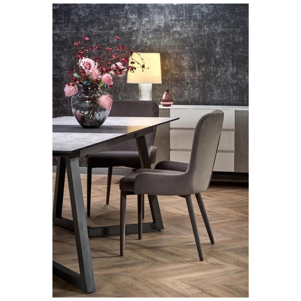 Deska stolu je vyrobena z kombinace skla a lakované MDF v barevném provedení šedá. Nohy a konstrukce jsou pro zajištění potřebné pevnosti a stability vyrobeny z práškované oceli, rovněž v šedém provedení.