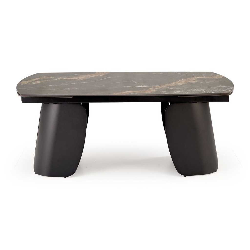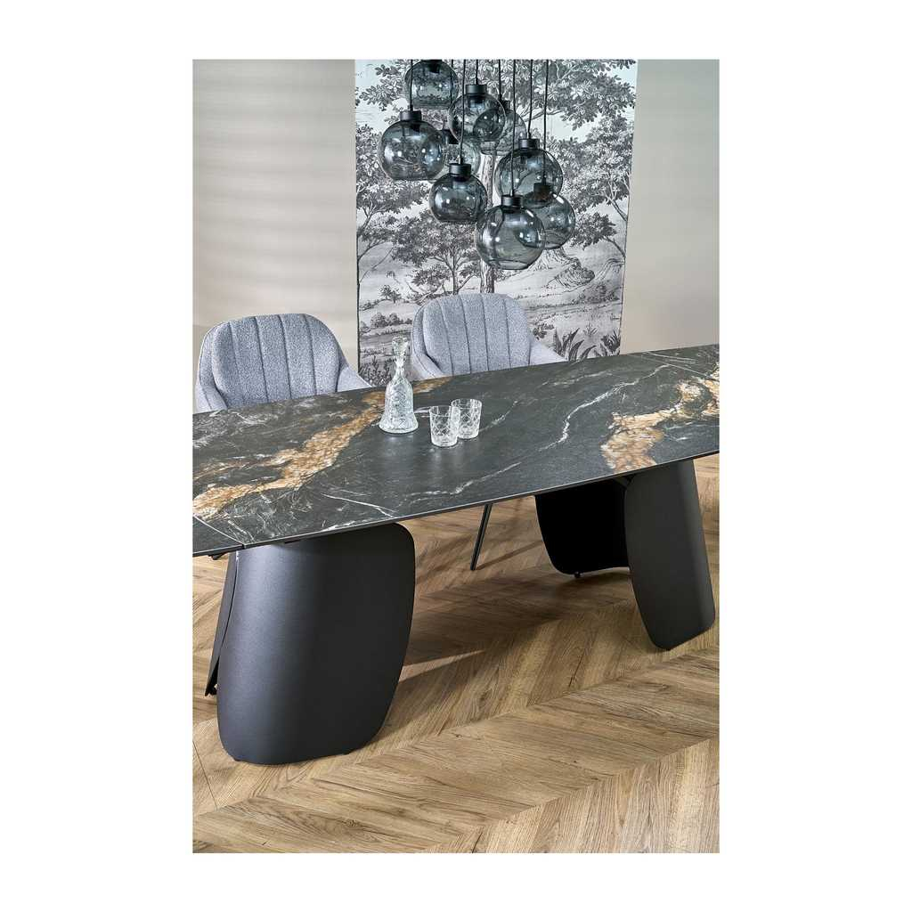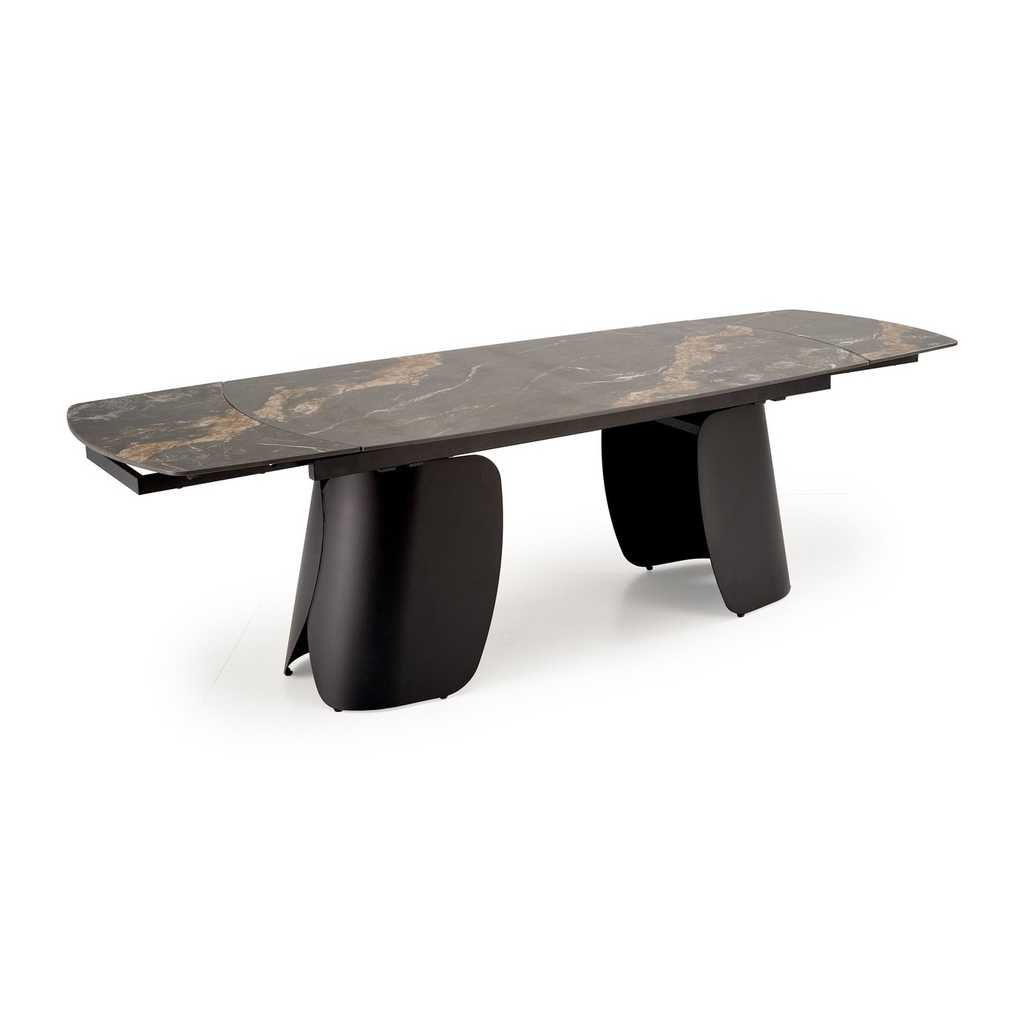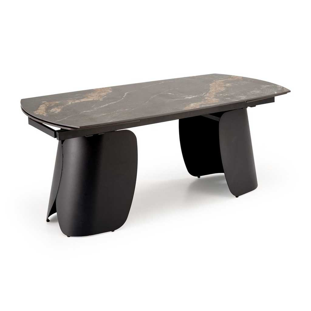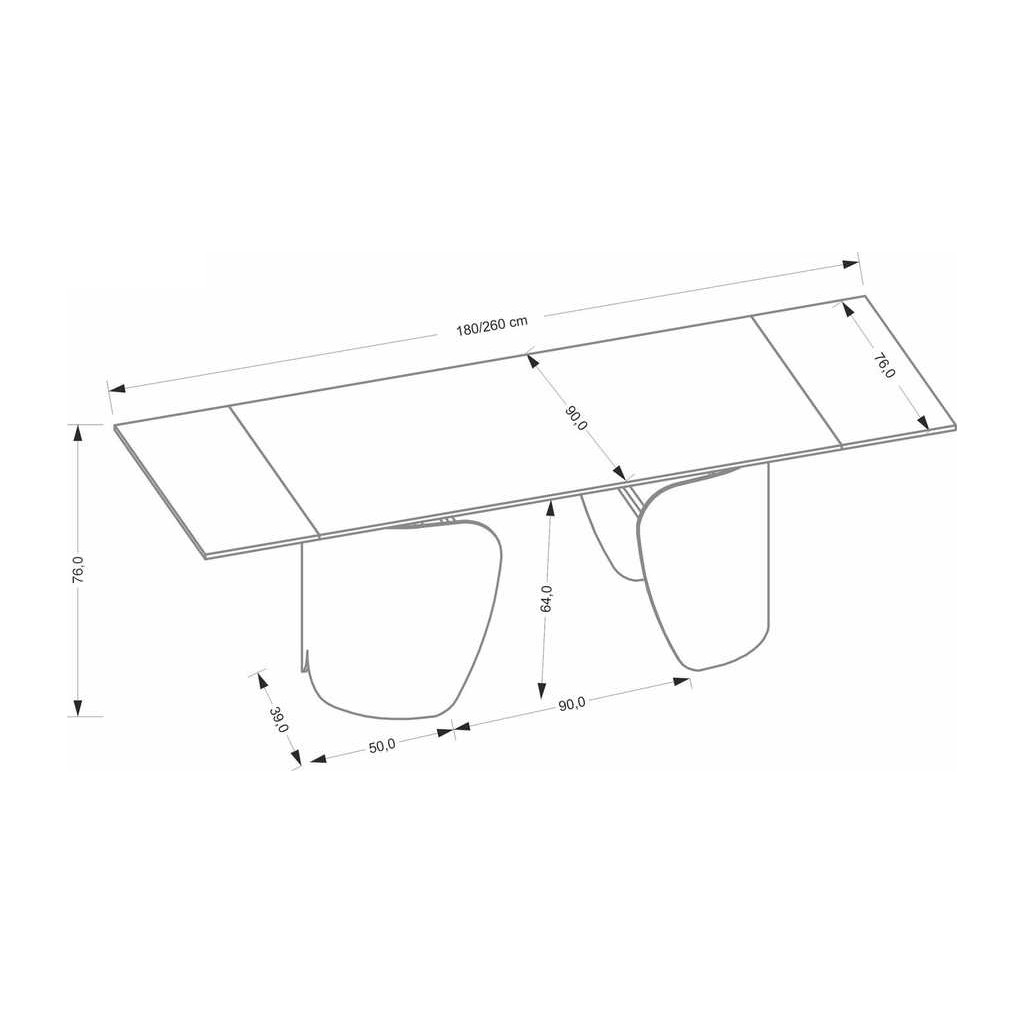 Jídelní stůl Vaughan je přesně ten kousek nábytku, který dodá vašemu interiéru moderní a elegantní vzhled. Jeho pevná horní deska z kamene nabízí odolnost i snadnou údržbu, zatímco kovová podnož zajišťuje stabilitu a dlouhou životnost. Stůl je rozkládací, což vám umožní přizpůsobit velikost podle aktuální potřeby - před rozložením má délku 180 cm a po rozložení až 260 cm.