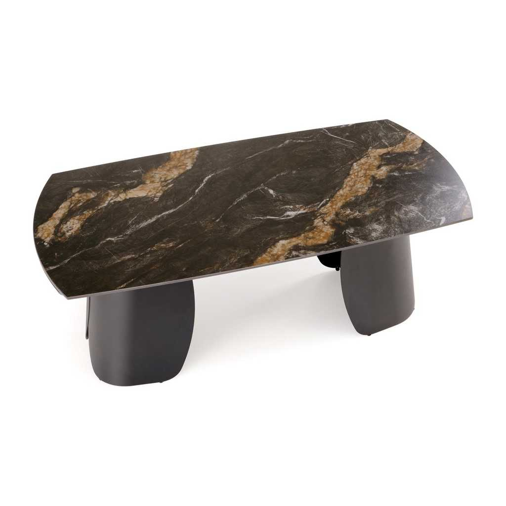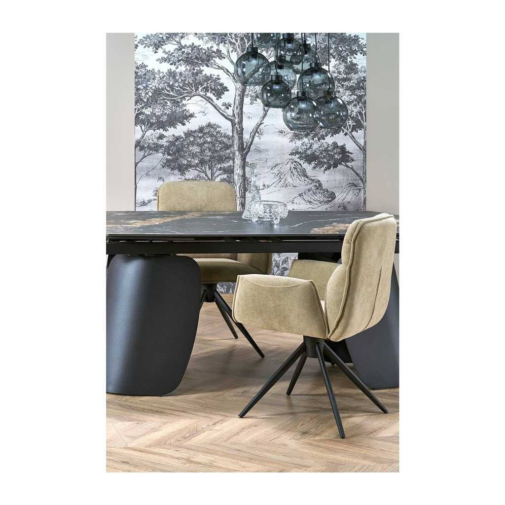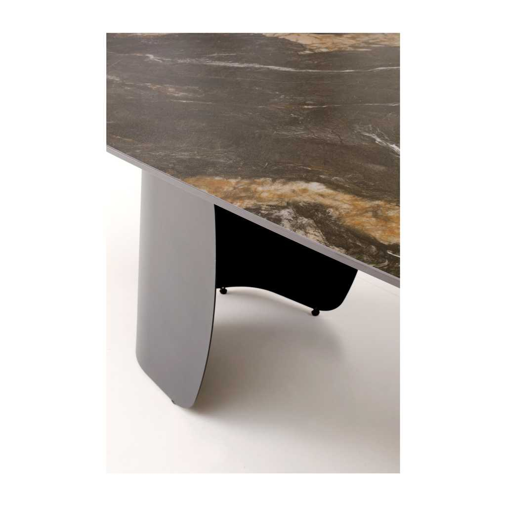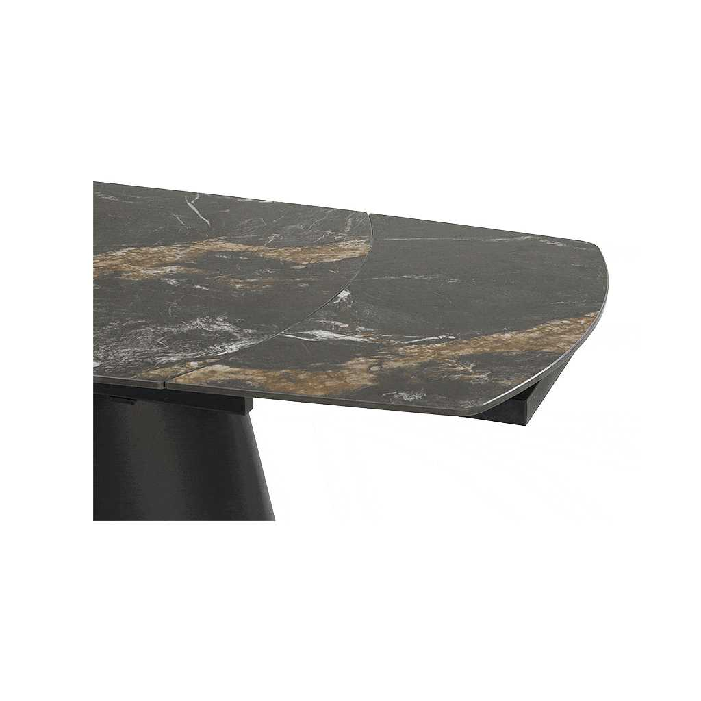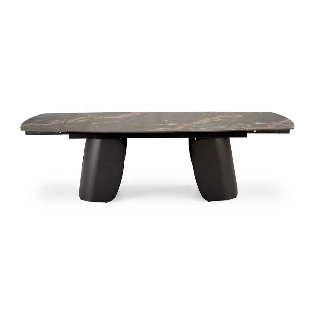Jídelní stůl Vaughan je přesně ten kousek nábytku, který dodá vašemu interiéru moderní a elegantní vzhled. Jeho pevná horní deska z kamene nabízí odolnost i snadnou údržbu, zatímco kovová podnož zajišťuje stabilitu a dlouhou životnost. Stůl je rozkládací, což vám umožní přizpůsobit velikost podle aktuální potřeby - před rozložením má délku 180 cm a po rozložení až 260 cm.