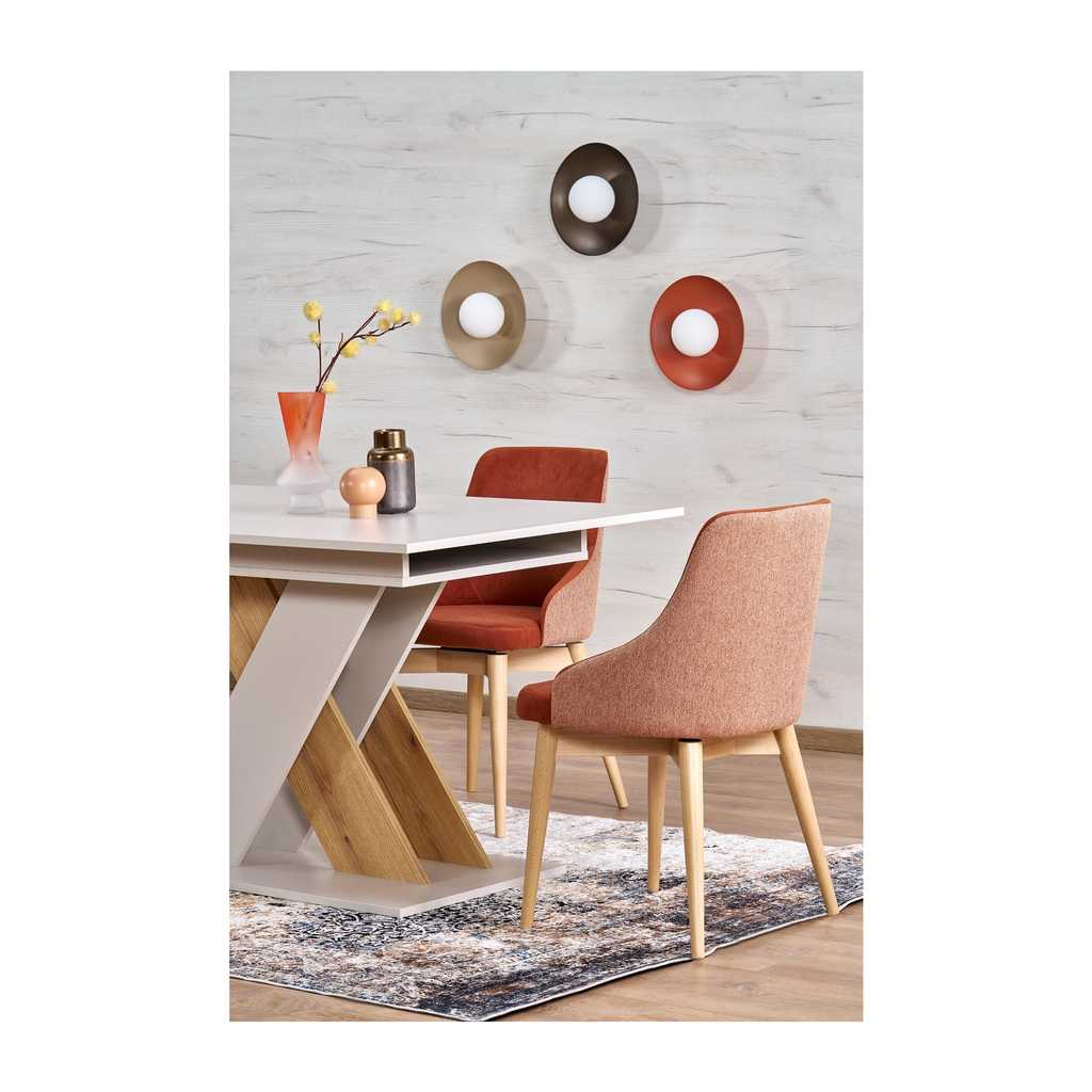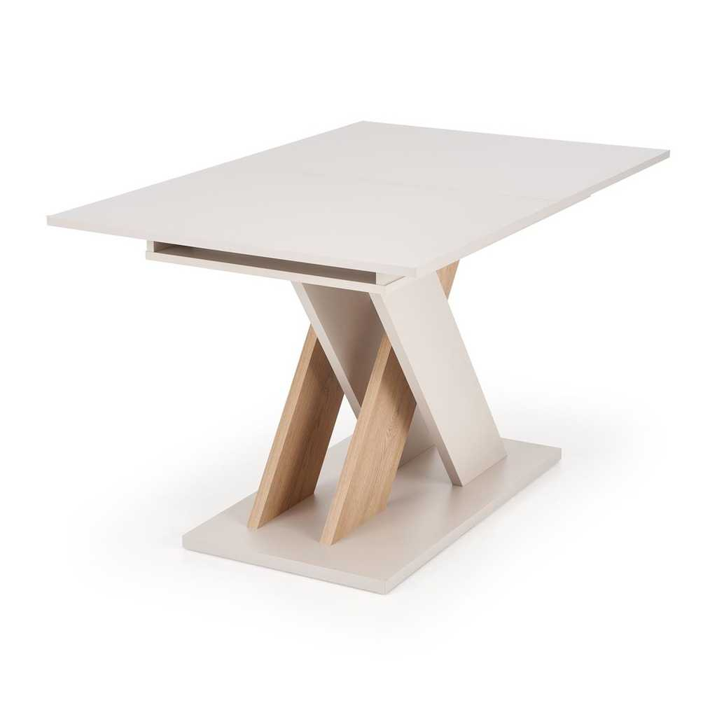 Xarelto se pyšní také praktičností. Díky funkci rozložení ze stolu pro 4 osoby uděláte pár pohyby místo pro posezení 6 hostů. Stůl z dýhovaných dřevotřískových desek stojí na pevné podstavě, překřížené nohy stolu tvoří zajímavý detail.