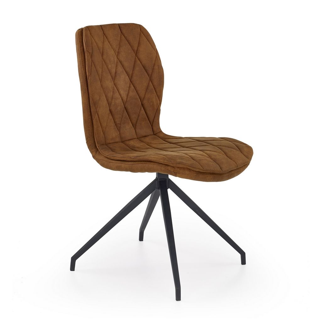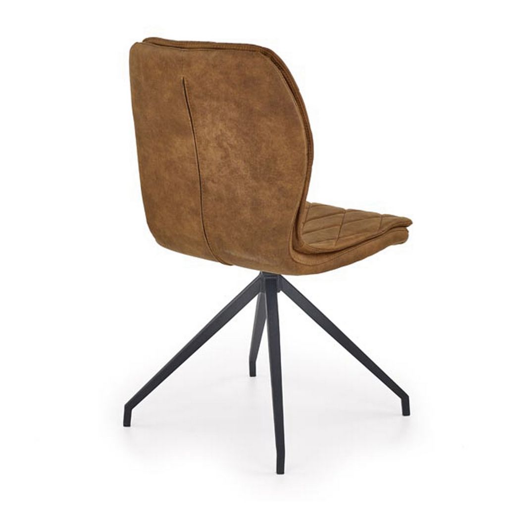 O stabilitu této židle se postará kovová podstava se čtyřmi nohami, které jsou lakovány práškovou šedou barvou a jsou na svých koncích zahnuty. Opěradlo i sedák jsou čalouněny v pohodlné eko kůži hnědé barvy.