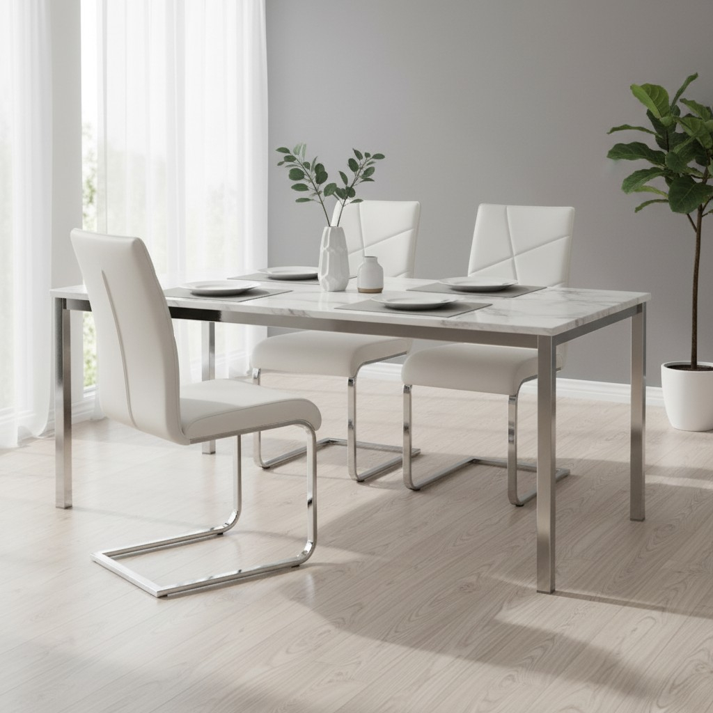 Jídelní židle Amelia, bílá / stříbrná