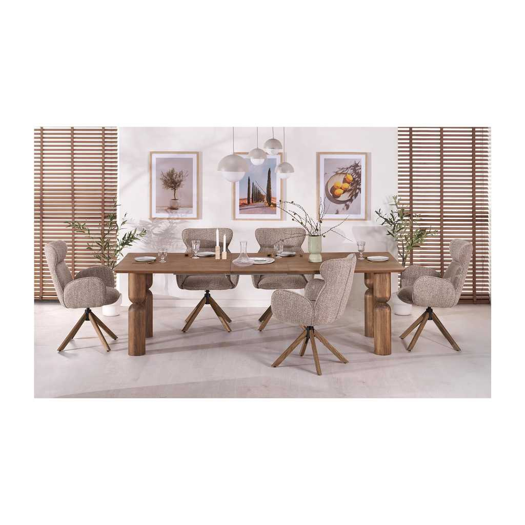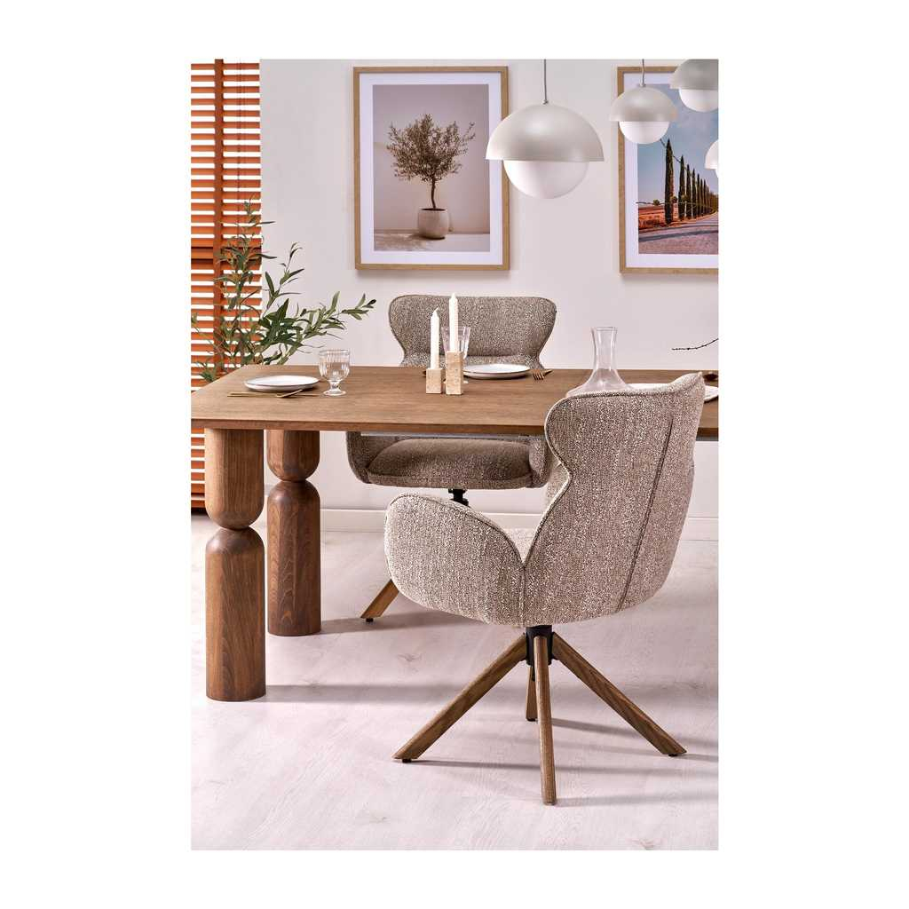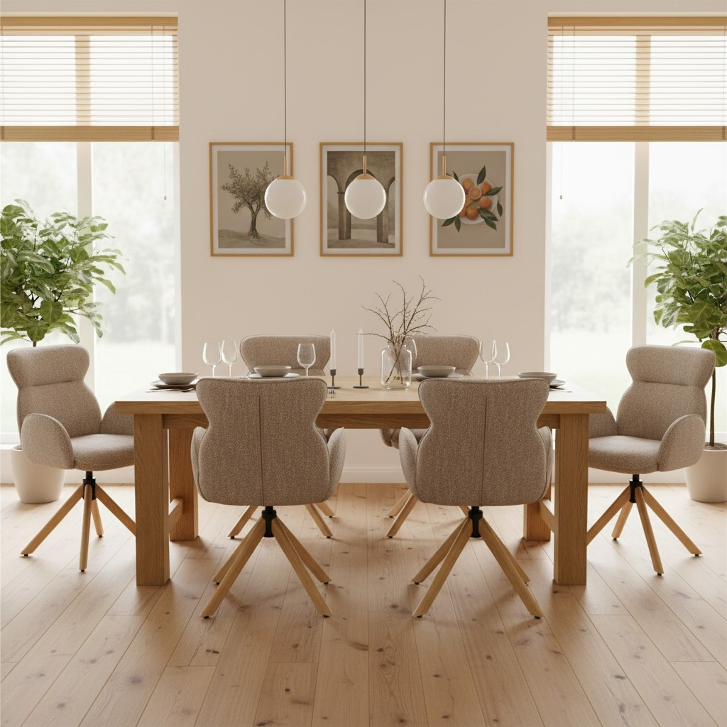Jídelní židle Anika nabízí spojení pohodlí a moderního designu, které zpříjemní každý jídelní kout. Díky kombinaci látkového sedadla a kovové podnože s designem dubového dřeva působí židle elegantně a zároveň stabilně. Je navržena pro každodenní použití s nosností až 120 kg, což zaručuje její pevnost a odolnost.