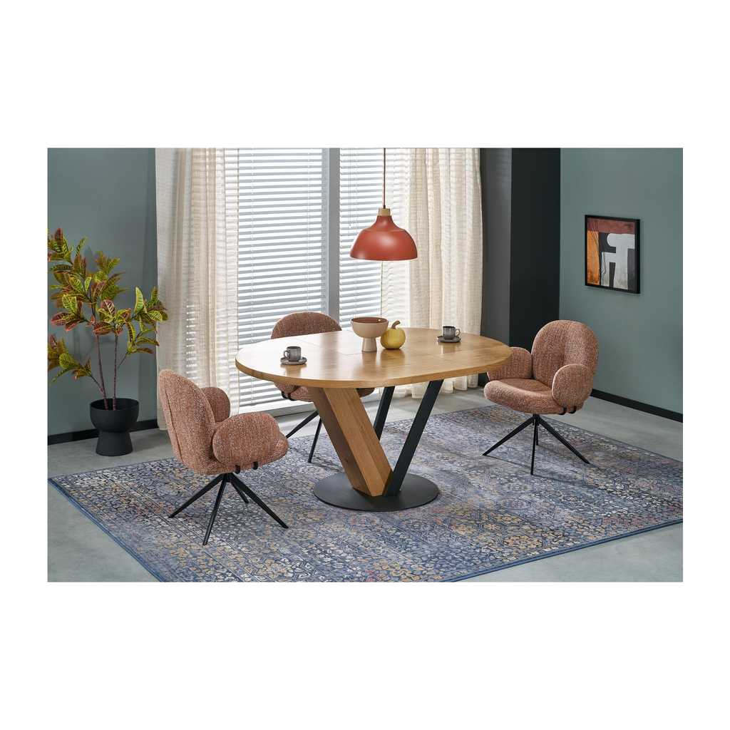 Jídelní židle Atkins nabízí moderní design spojený s komfortem, který oceníte při každém posezení u stolu. Židle je čalouněná látkou, která zajišťuje měkký a příjemný povrch k sezení. Konstrukce z kovu poskytuje pevnost a stabilitu, což zaručuje bezpečné používání i při nosnosti až 120 kg. Díky svým rozměrům se snadno přizpůsobí různým prostorům.