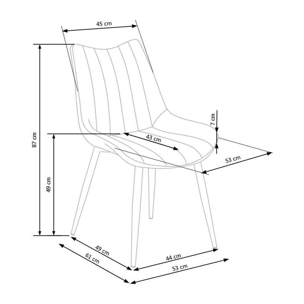 Jídelní židle Audry vyniká svým moderním designem, který skvěle doplní jakýkoliv interiér se zaměřením na jednoduchost a eleganci. Její kompaktní rozměry a pevná kovová podnož jí zajišťují stabilitu a dlouhou životnost, což oceníte při každodenním používání.