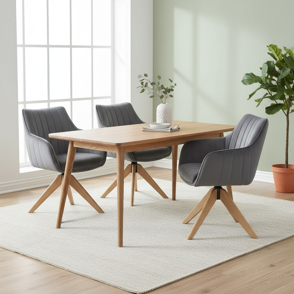 Unikátní dřevěná podnož s čtyřmi nohami dodává stabilitu a estetický vzhled, který se snadno přizpůsobí různým stylům bydlení. Otočný mechanismus umožňuje pohodlný pohyb až do 180 stupňů s funkcí návratu do původní polohy, což zvyšuje praktičnost a komfort používání.