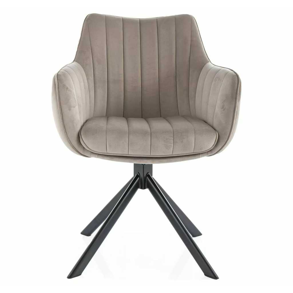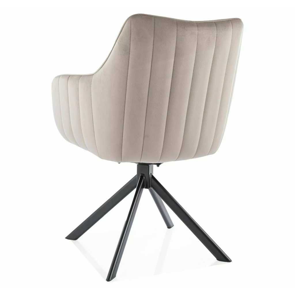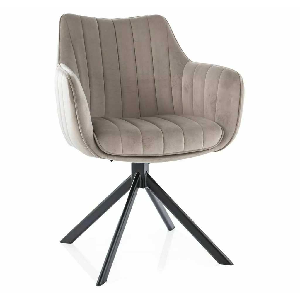 Židle je potažená sametovou látkou, která jí dodává nádech honosnosti. Díky jemné látce a polstrování je sezení na židli pohodlné po celou dobu obědové pauzy. Sedák je otočný o 180°.