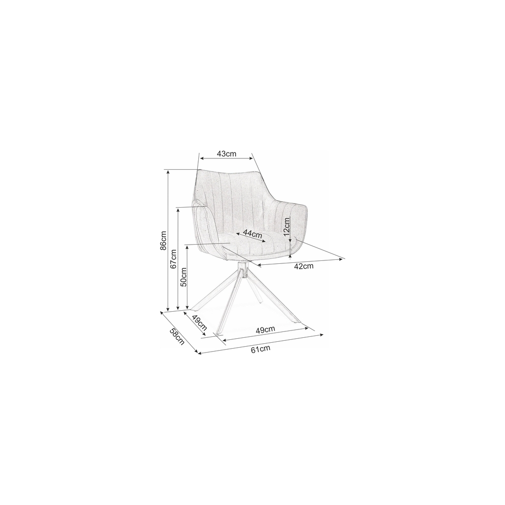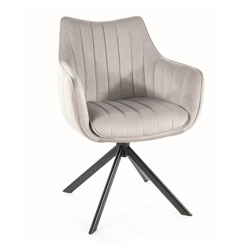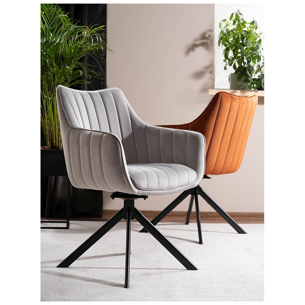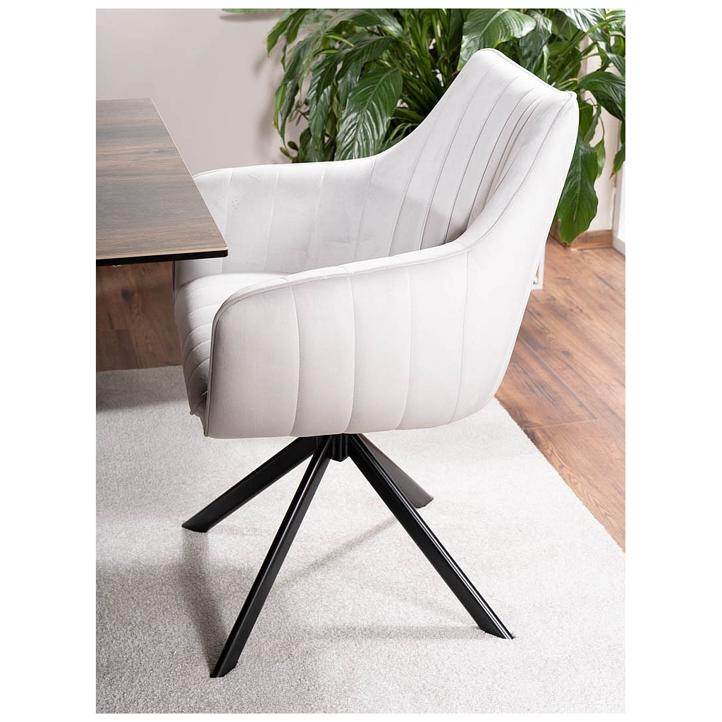 Židle je potažená sametovou látkou, která jí dodává nádech honosnosti. Díky jemné látce a polstrování je sezení na židli pohodlné po celou dobu obědové pauzy. Sedák je otočný o 180°.
