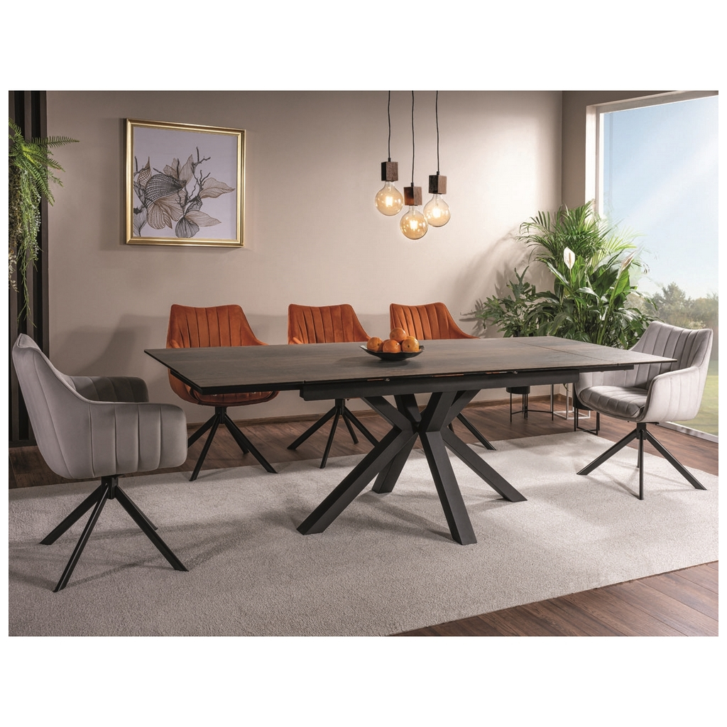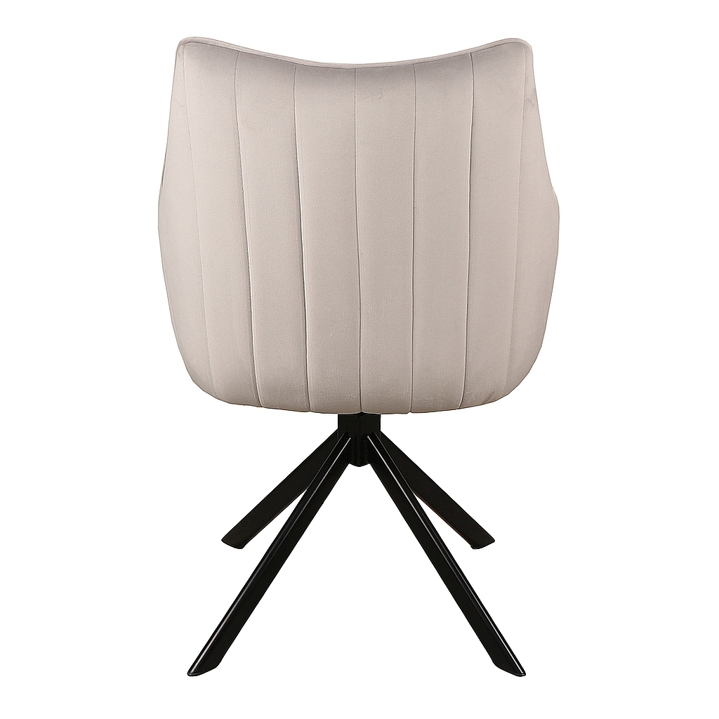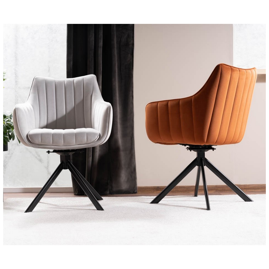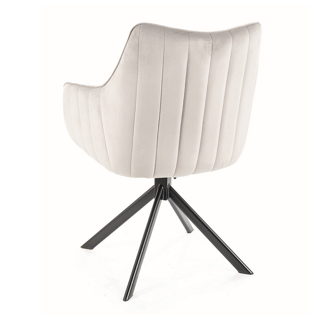 Židle je potažená sametovou látkou, která jí dodává nádech honosnosti. Díky jemné látce a polstrování je sezení na židli pohodlné po celou dobu obědové pauzy. Sedák je otočný o 180°.