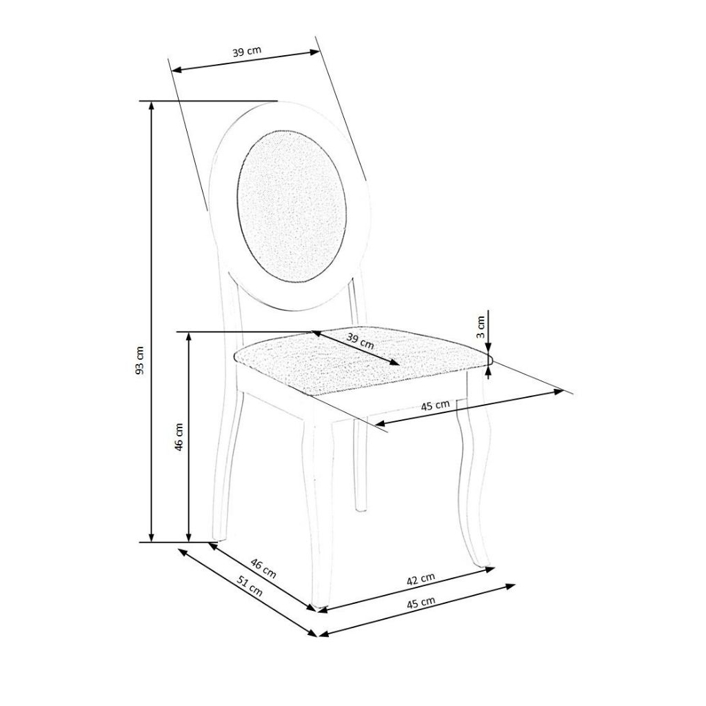 Tato židle je navržená v nadčasovém barokním stylu. Hodí se tedy přavážně do elegantních interiérů kaváren i domácností. Konstrukce z masivního dřeva zajišťuje stabilitu a odolnost. Látkou potažený sedák a opěrák zajistí váš komfort. Unese až 100 kg.
