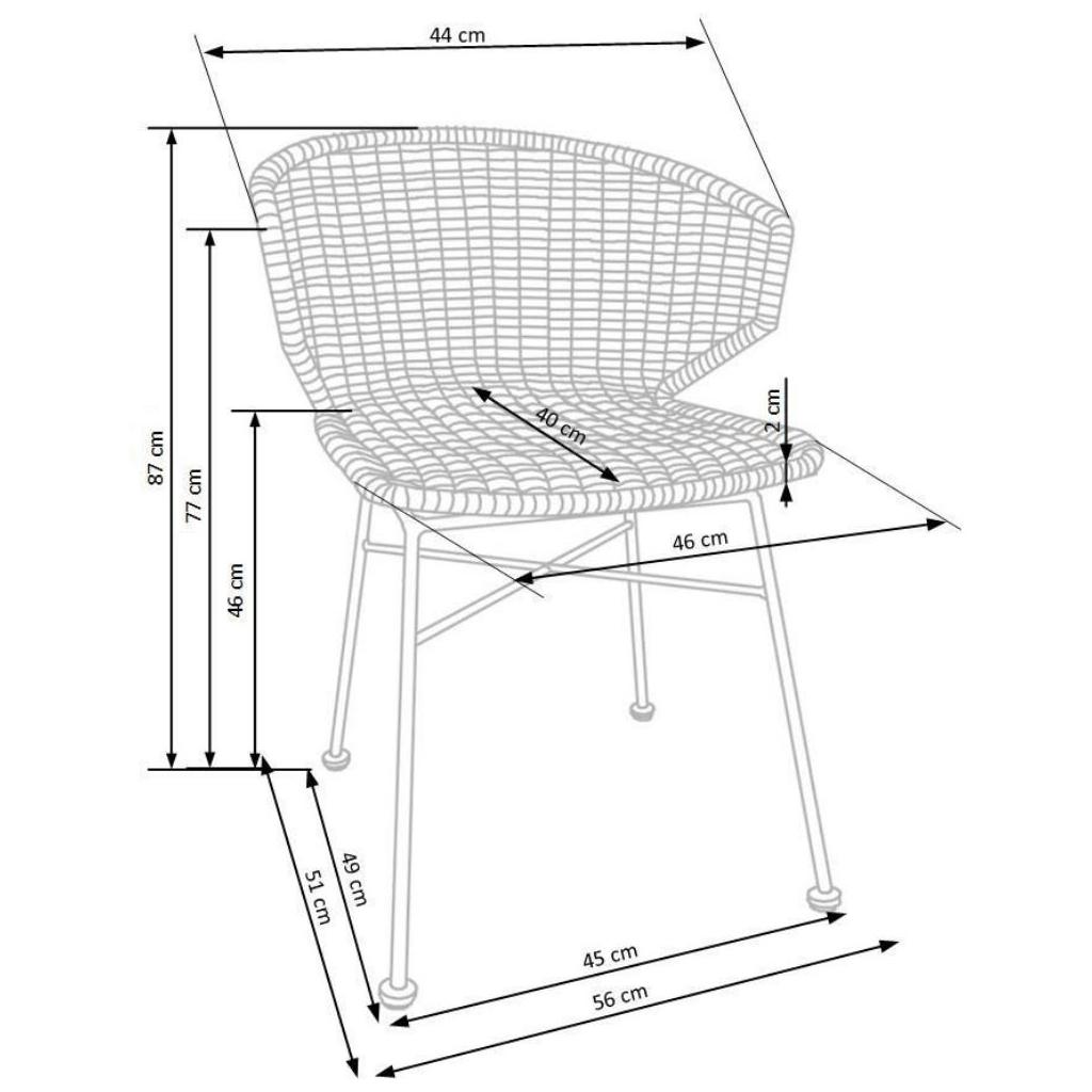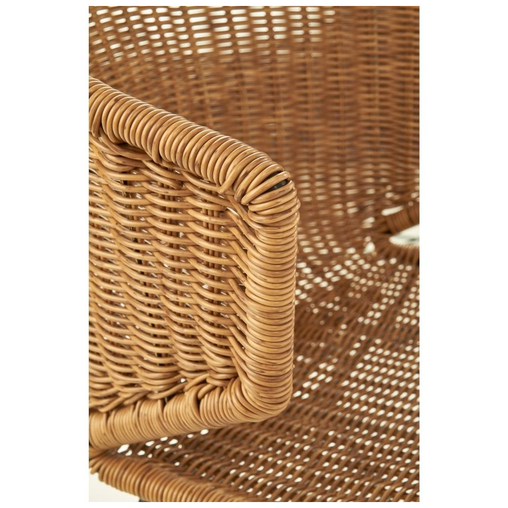 Její naturální vzhled umocňuje použitý materiál sedáku a opěradla, kterým je ratan. Pro potřebnou stabilitu celé židle byly její nohy vyrobeny z kovu.