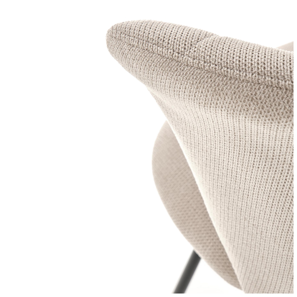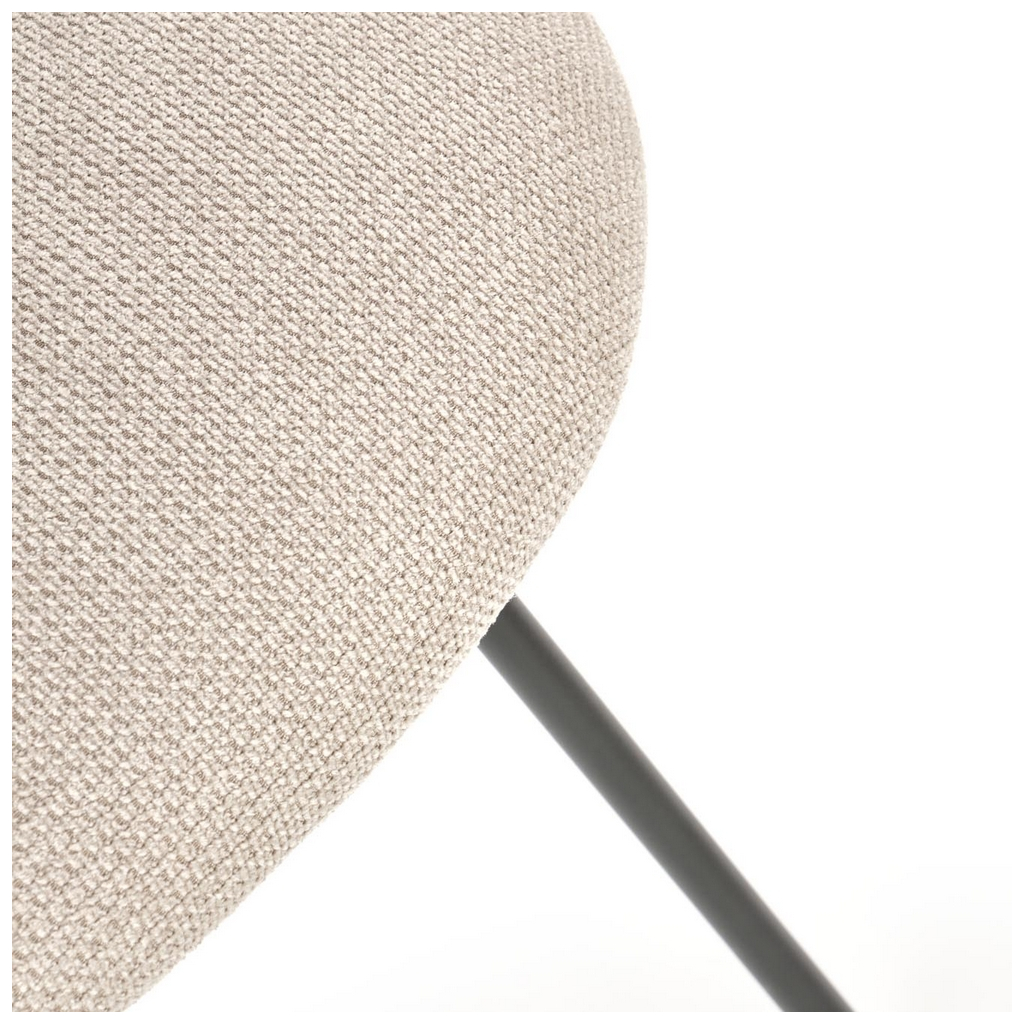 Sedadlo je čalouněné látkou, která vám v zimě pomůže udržet si teplo, v létě zase oceníte její prodyšnost. Podnož židle je z černé práškované ocele a navzdory svému štíhlému vzhledu unese bez problému až 100 kg.