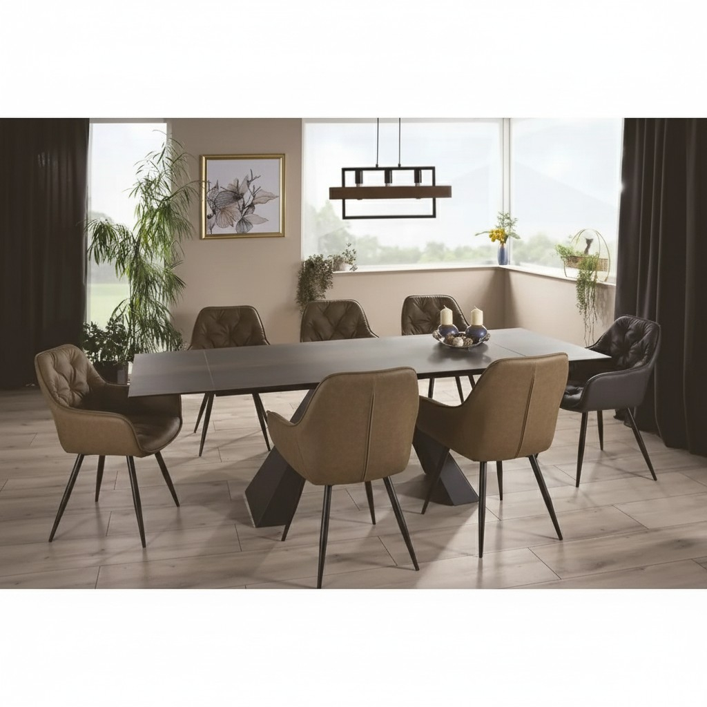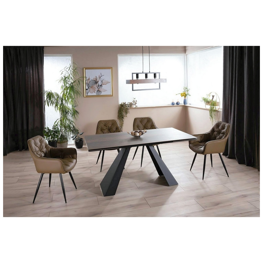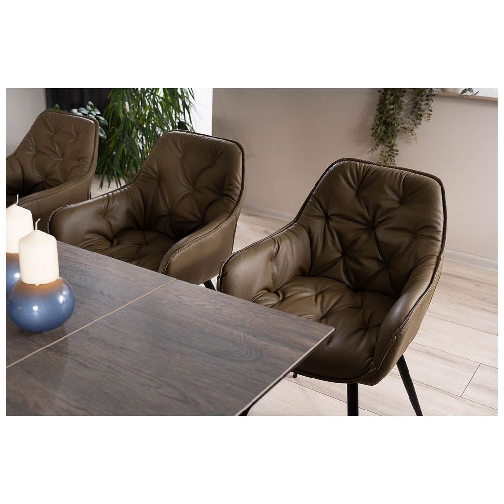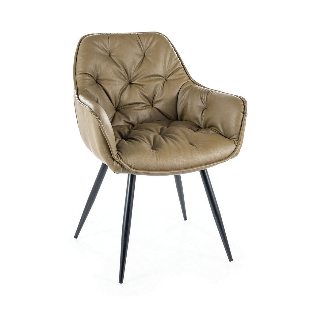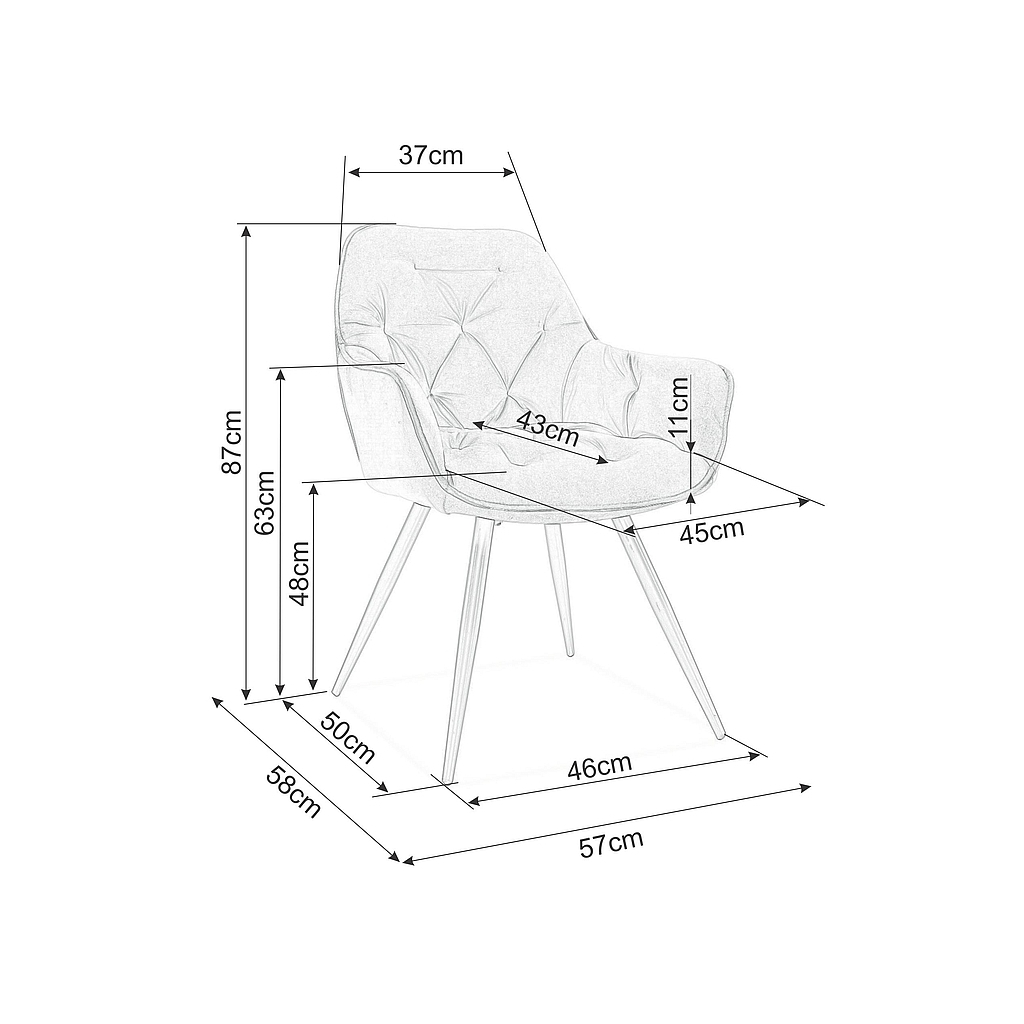 Čtyřnohá kovová podnož nejen, že je zárukou perfektní stability, ale zároveň dodává židli styl. V kombinaci se sedákem potaženým elegantní eko kůží s efektním prošíváním tvoří dohromady moderní a vkusný kousek. Polstrování přímo vybízí k usednutí.