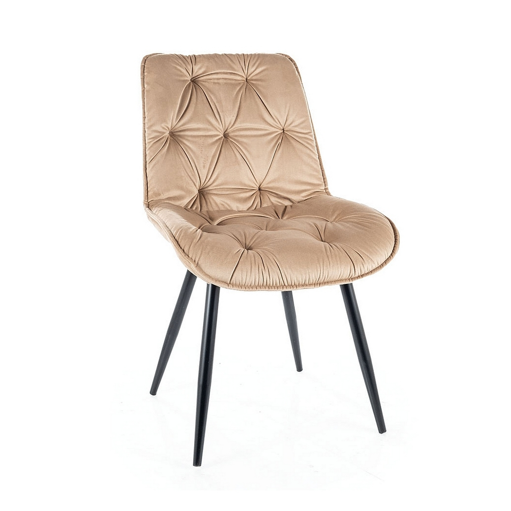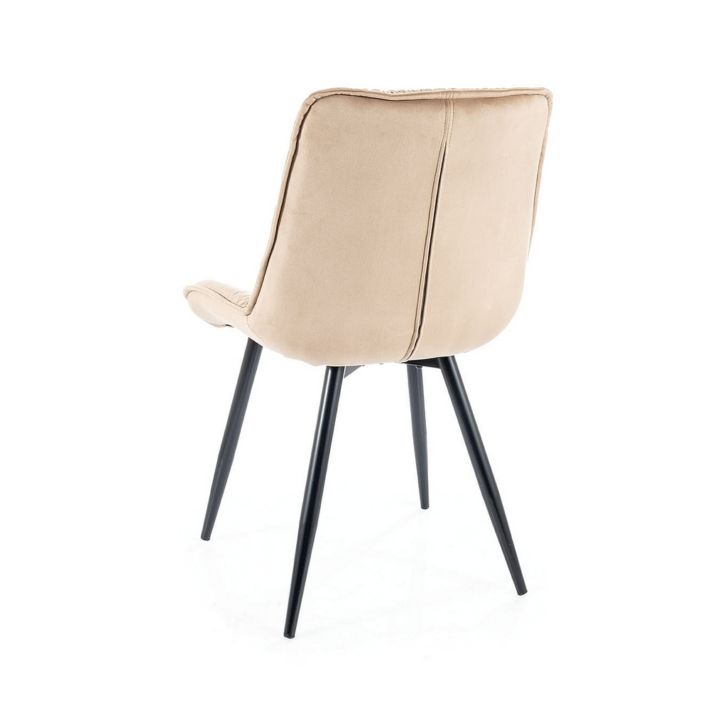 Čtyřnohá kovová podnož nejen, že je zárukou perfektní stability, ale zároveň dodává židli styl. V kombinaci se sedákem potaženým sametově hebkou látkou s efektním prošíváním tvoří dohromady moderní a vkusný kousek. Polstrování přímo vybízí k usednutí.