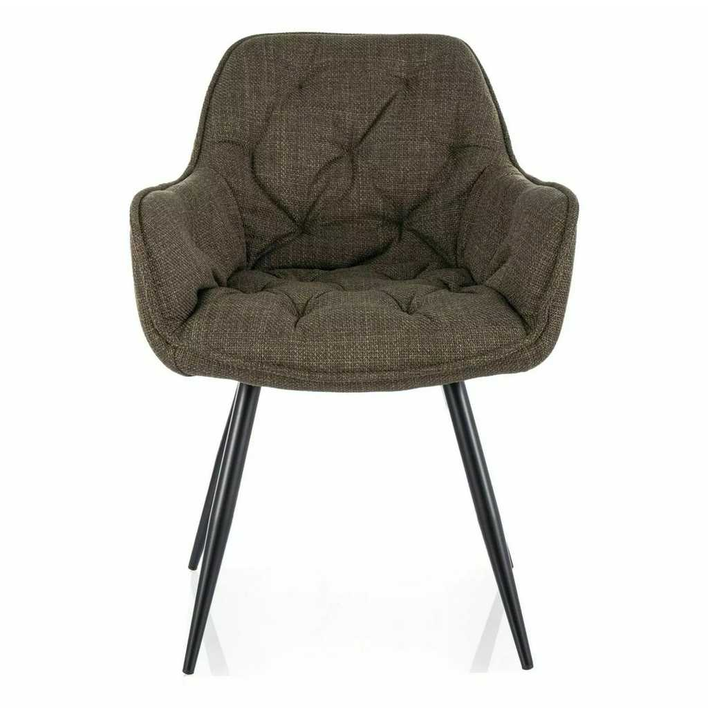Čtyřnohá kovová podnož nejen, že je zárukou perfektní stability, ale zároveň dodává židli styl. V kombinaci se sedákem potaženým hrubší látkou s klasickým prošíváním Chesterfield tvoří dohromady moderní a vkusný kousek.