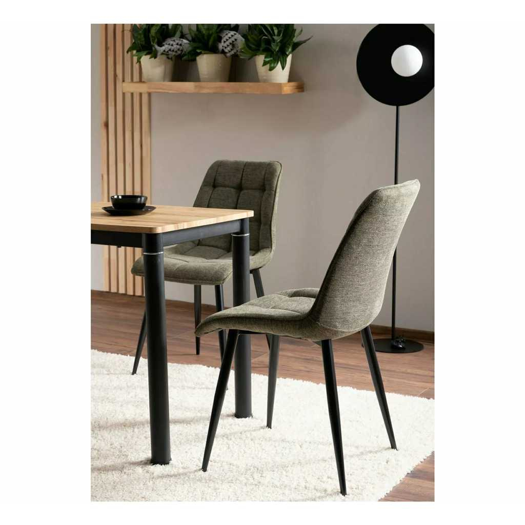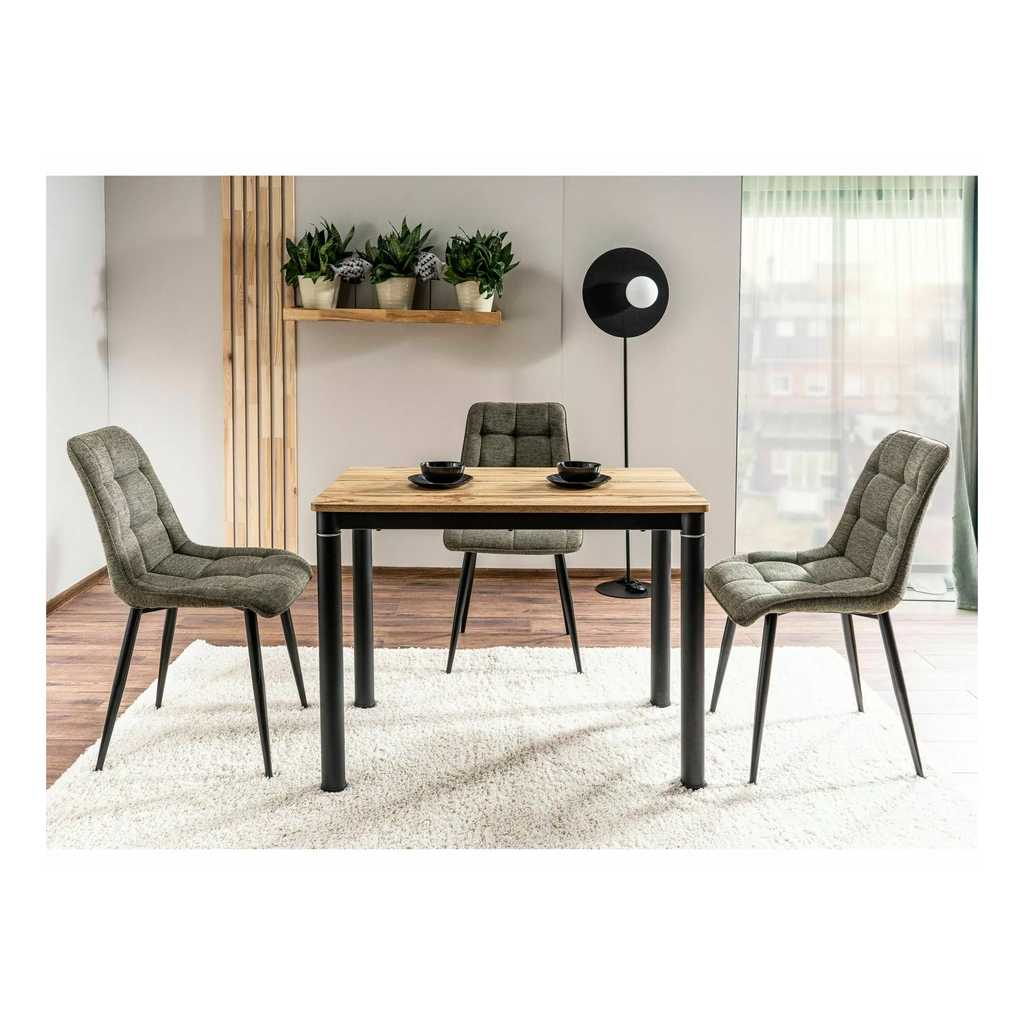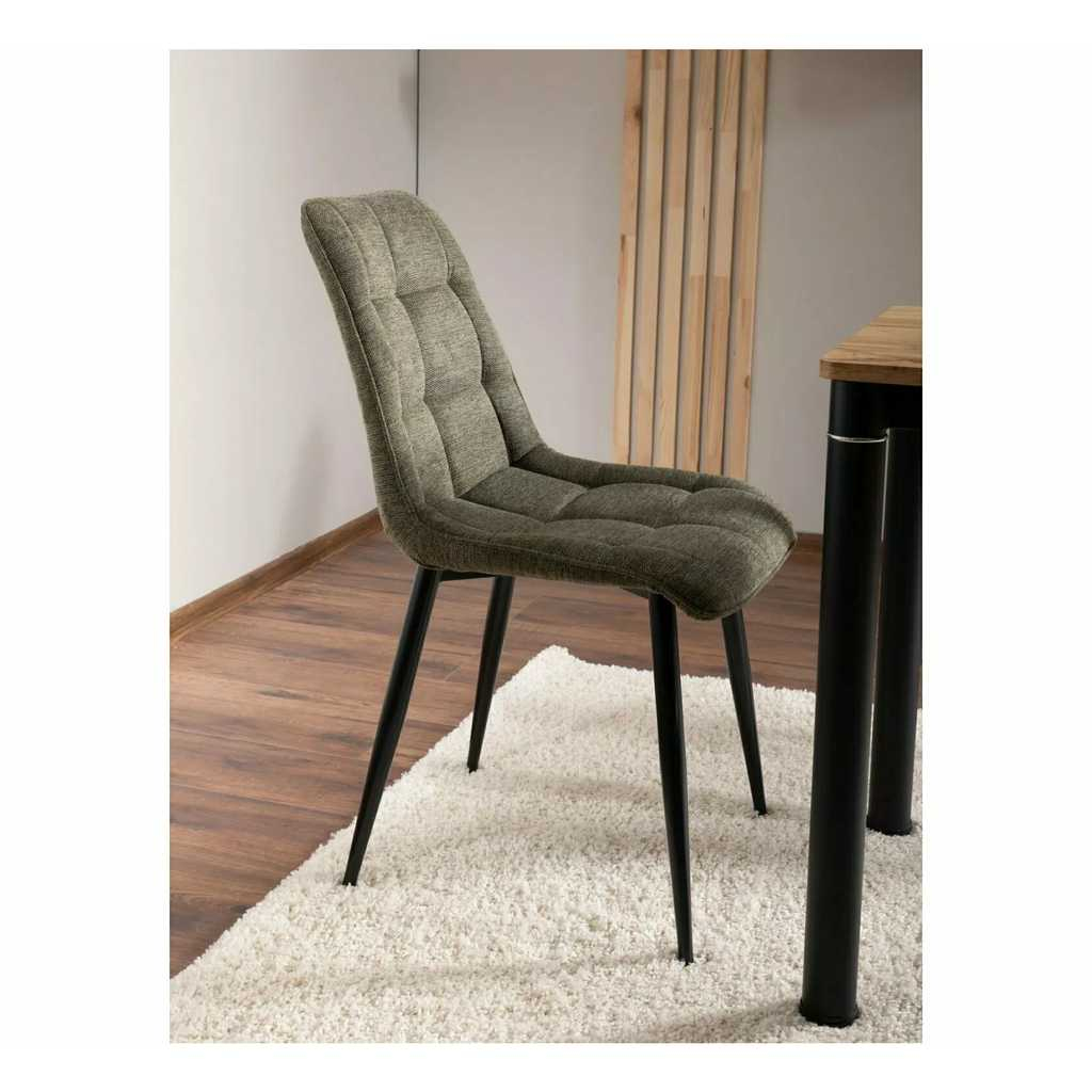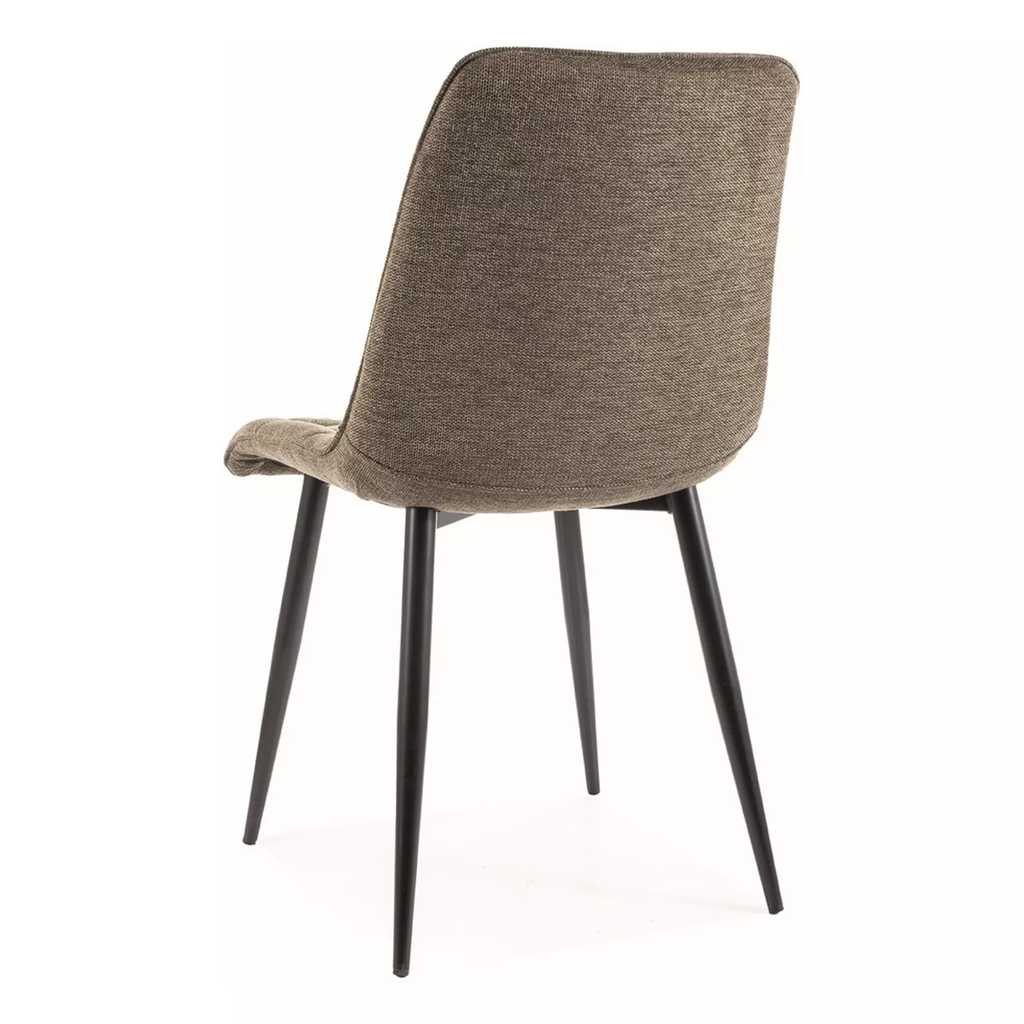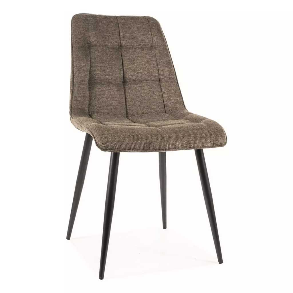Konstrukce a úzké nohy z kovu dodávají židli stabilitu, zároveň ale působí vzdušně. O efektní vzhled a pohodlí se stará polstrování a potah z hruběji tkané látky. Ta je zvláštní moderním prošíváním.