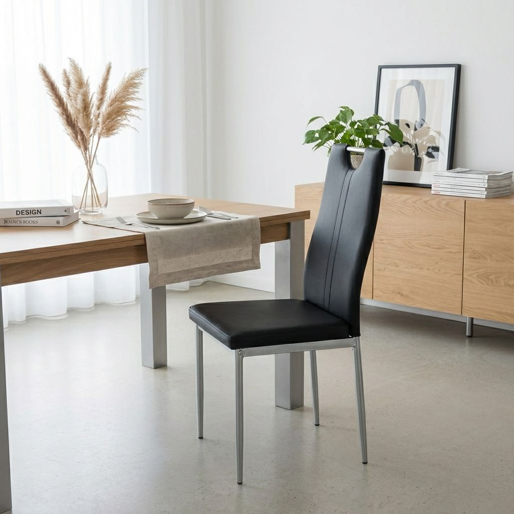 Jídelní židle Coreon v moderním stylu doplní vaši kuchyň či jídelnu elegantním prvkem. Je vyrobena z eko kůže, která působí elegantně a současně je ideální na údržbu. Kovový vzhled nožek doplňuje luxusní vzhled.