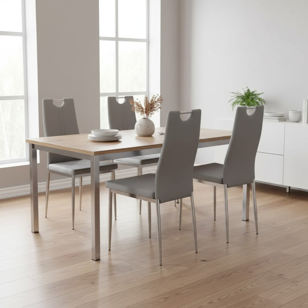 Jídelní židle Coreon v moderním stylu doplní vaši kuchyň či jídelnu elegantním prvkem. Je vyrobena z eko kůže, která působí elegantně a současně je ideální na údržbu. Kovový vzhled nožek doplňuje luxusní vzhled.