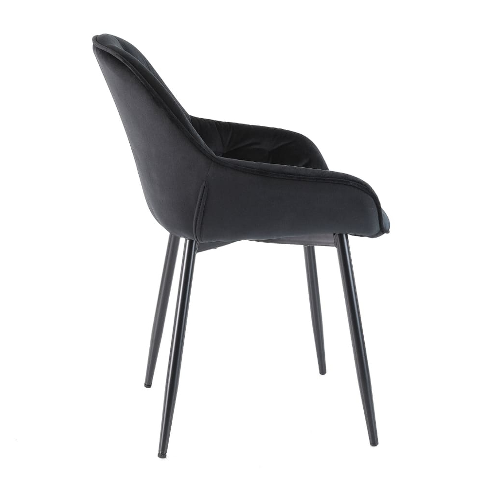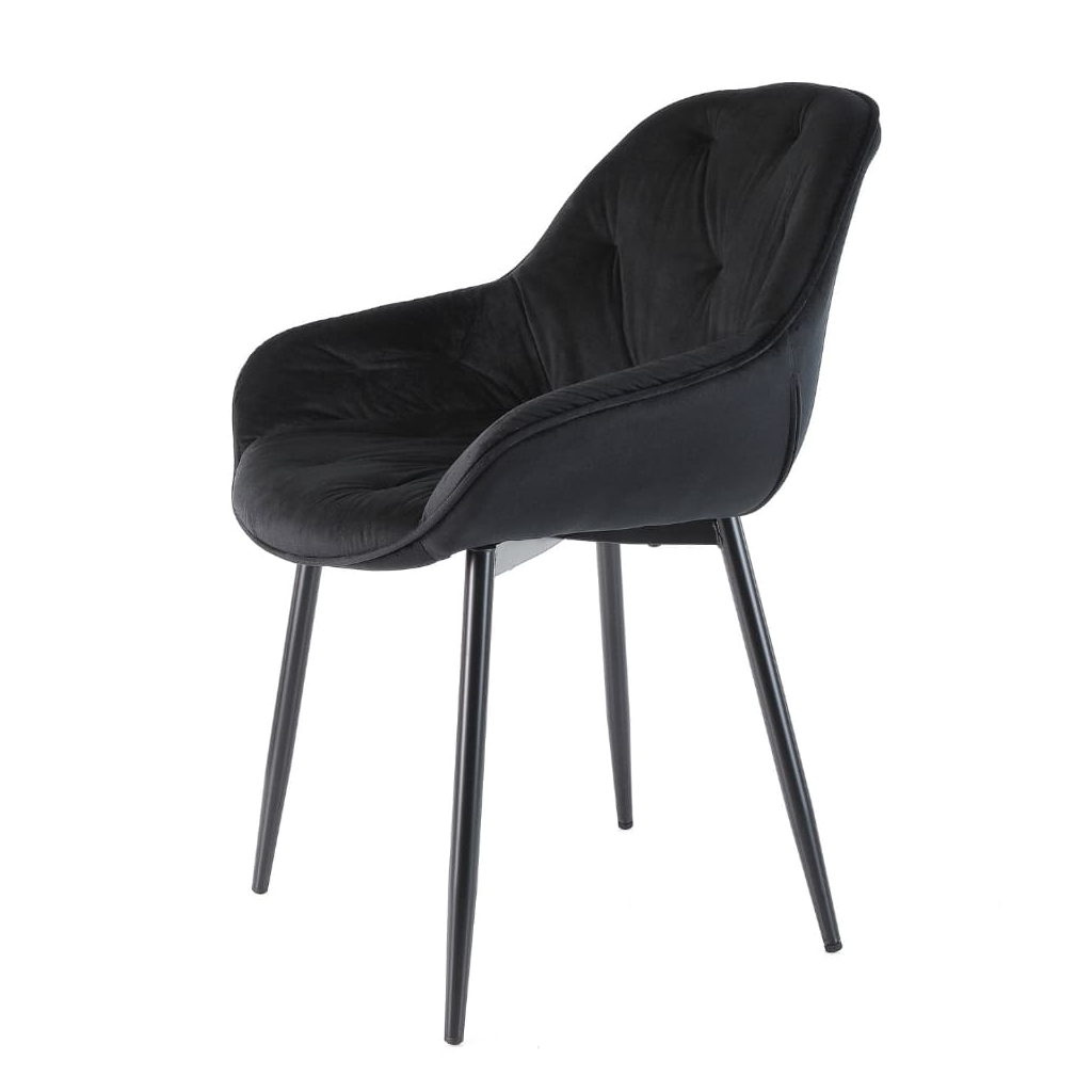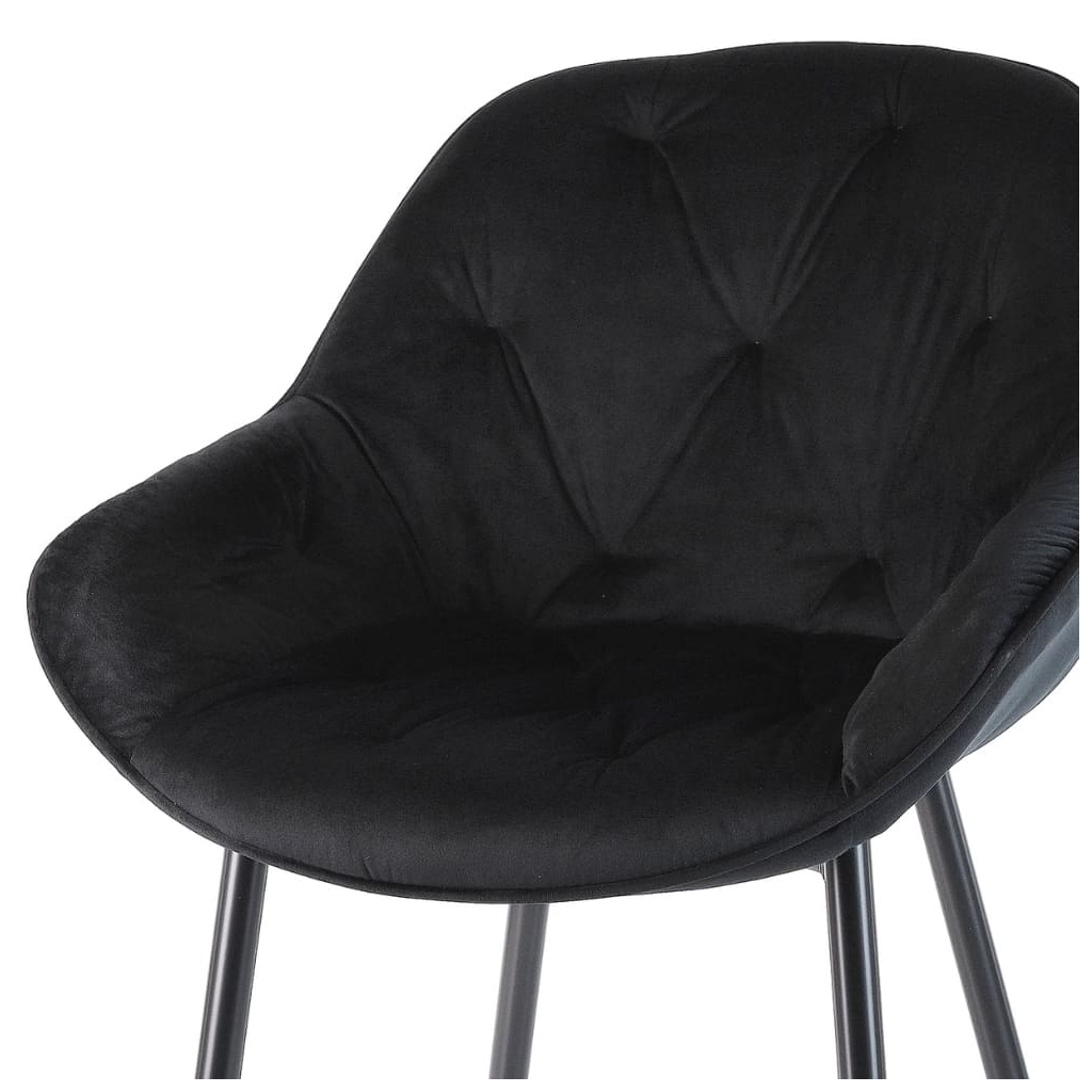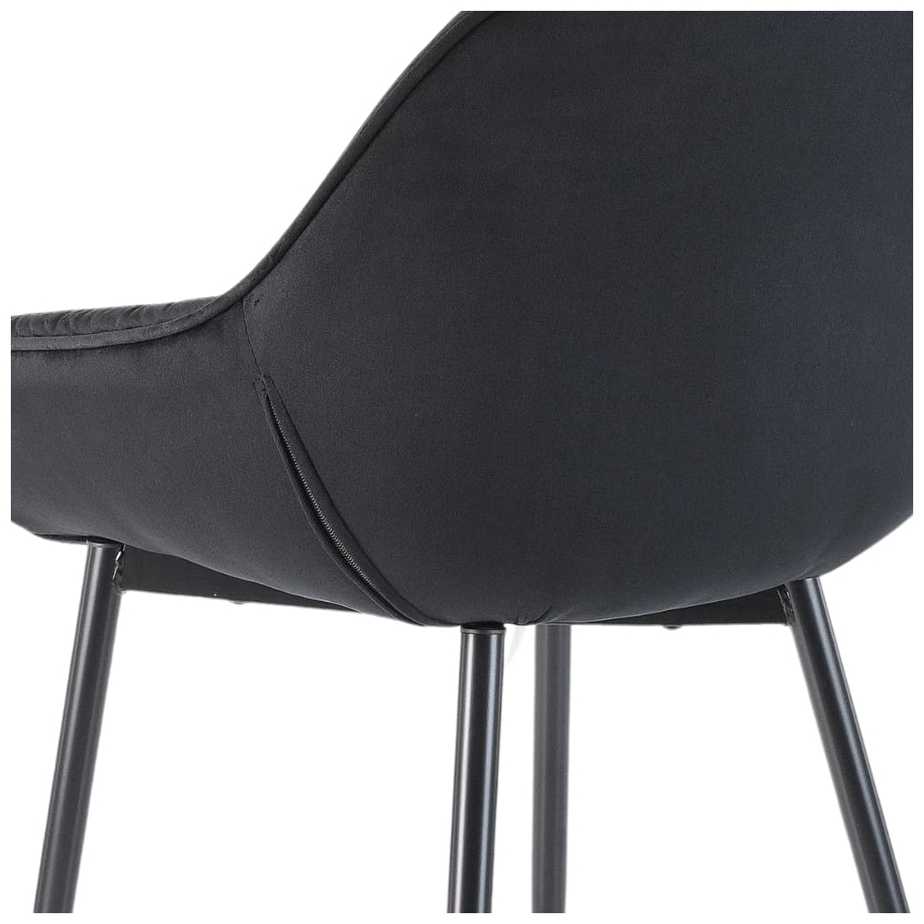Jídelní židle Rowena stojí na černých kovových nohách, které pod sedadlem pevně spojuje křížová konstrukce. I díky ní si židle poradí se zátěží až 120 kg.
